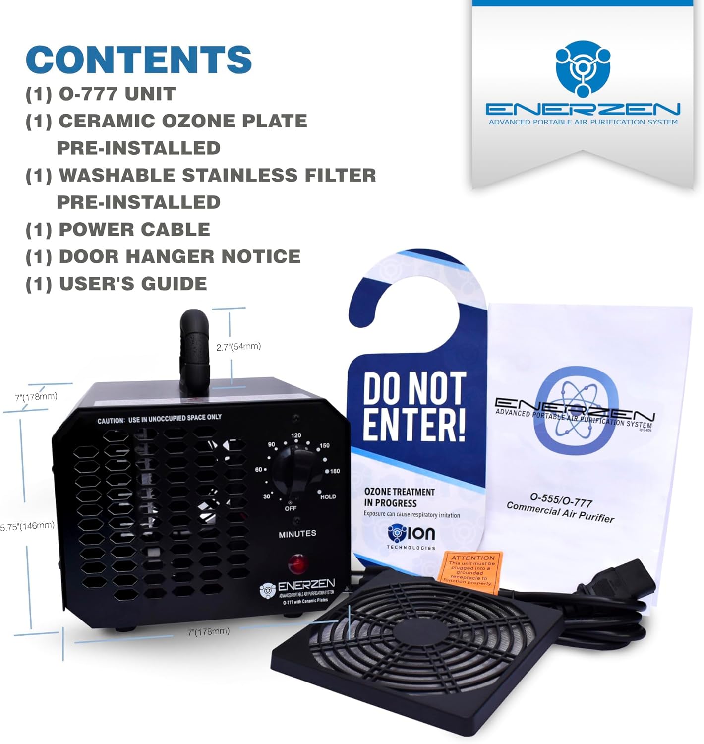 BETTER RESULTS W/ UNIQUE PULSATING FEATURE: Enerzen’s O-777 circuit board with 11,000 mg/h adjusts fan speed and ozone output to create a “pulsating” effect. This aids in destroying any lingering “musty” or imbedded odors and results in longer lasting treatments.