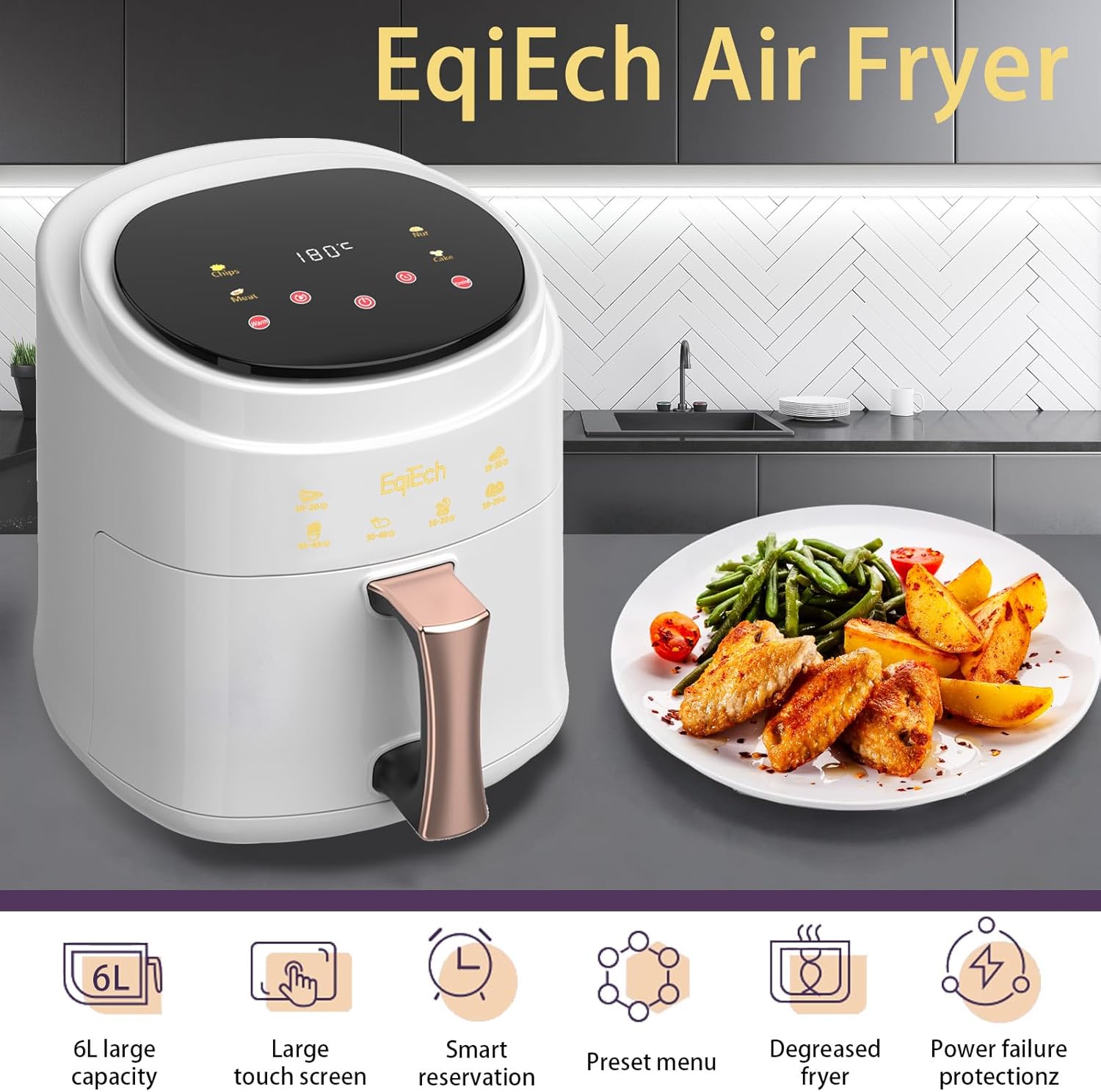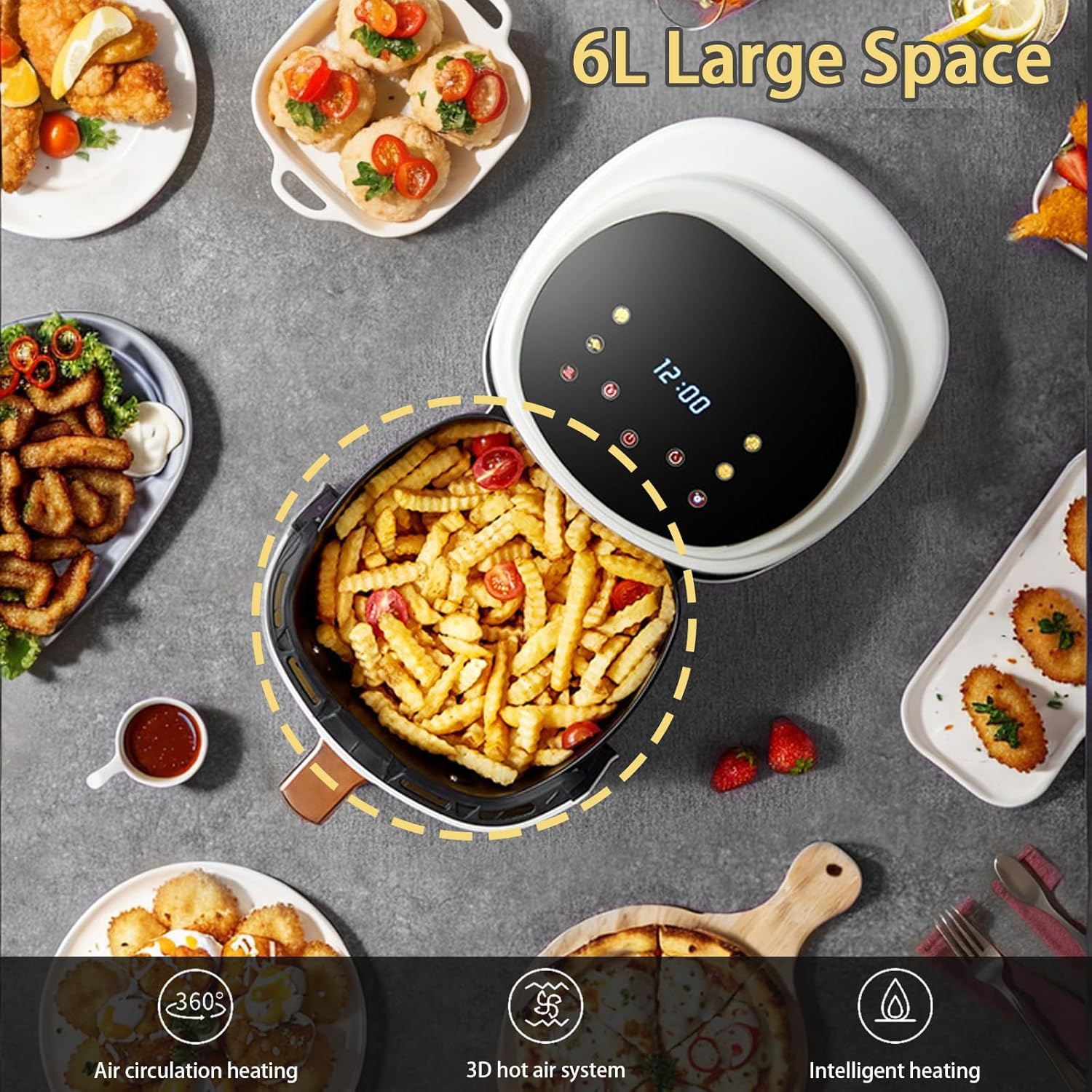 【Spacious 6 Litre Capacity】 The 6 litre capacity of this air fryer is perfect for families or gatherings and can easily cater for multiple people. Say goodbye to batch cooking and enjoy faster meal preparation, so your food is always at its best and ready for any occasion with ease.