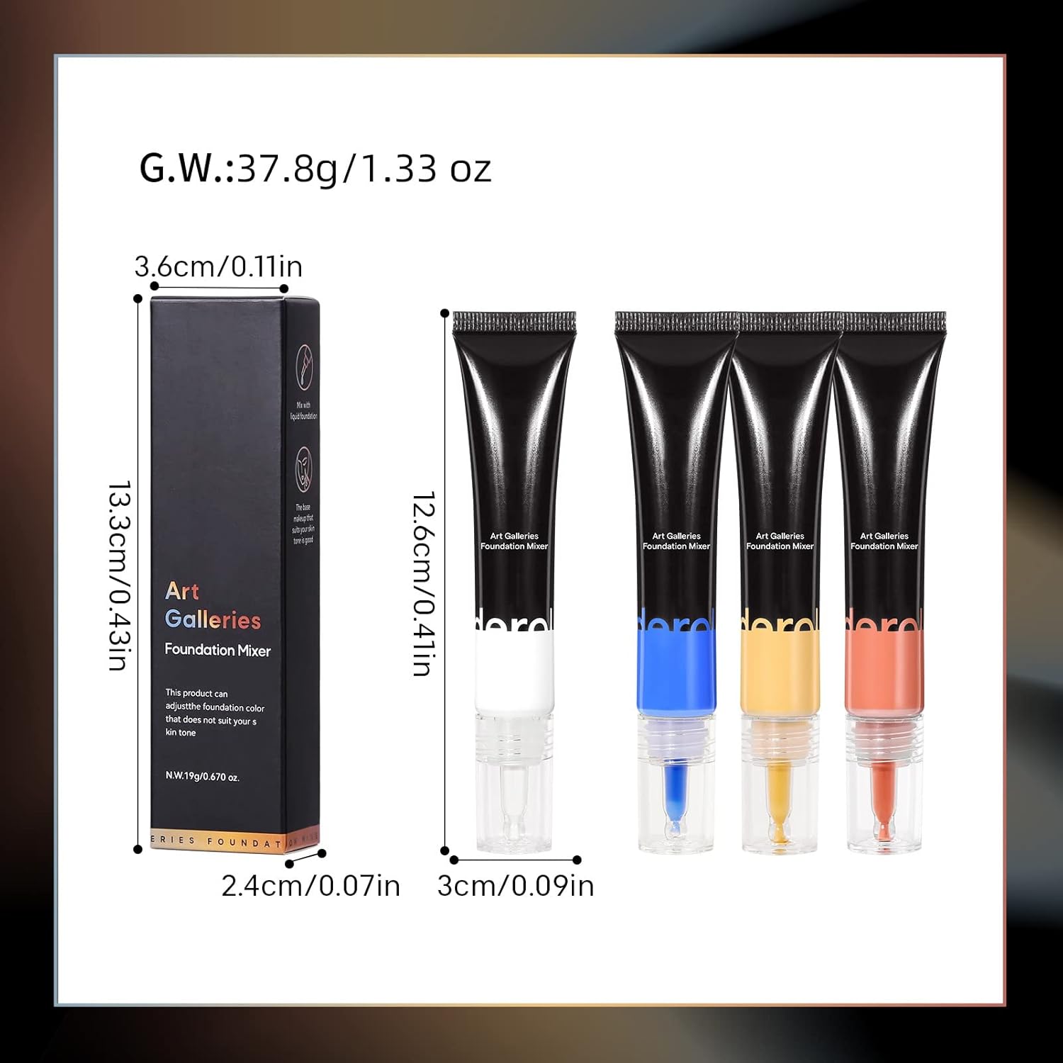 【Correct for Perfect Shade】The foundation mixing pigments are available in 4 colors: white,blue,yellow,orange. The white one can lighten the foundation color, the blue one can correct extra color warmness,the yellow one can be used to turn pink foundation into yellow foundation, and orange one can be used to turn light foundation into dark foundation.It can change the foundation color but not influence original effects of it, you can feel free to create your own perfect shade.