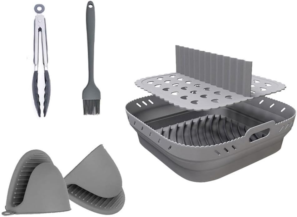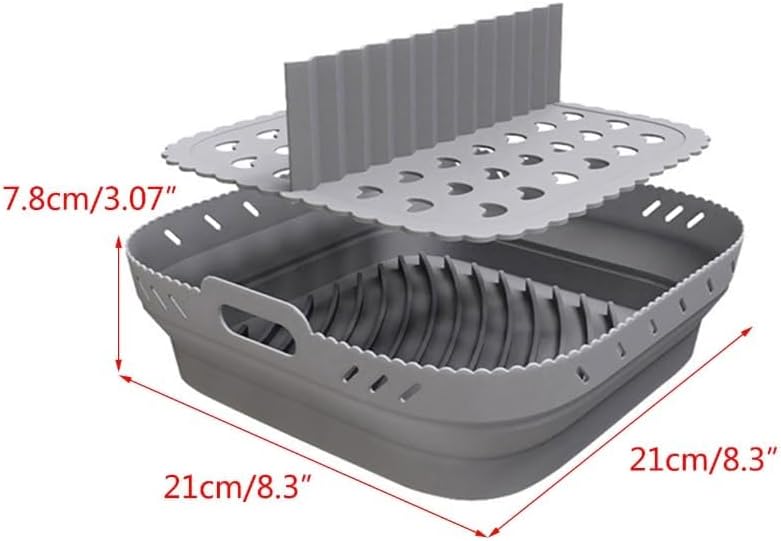 Air Fryer Silicone Liners, 8.5” Square Air Fryer Silicone Basket, Heat Resistant Easy Cleaning Air Fryers Oven Accessories, Reusable Air Fryer Silicone Bowl with Divider, Gray