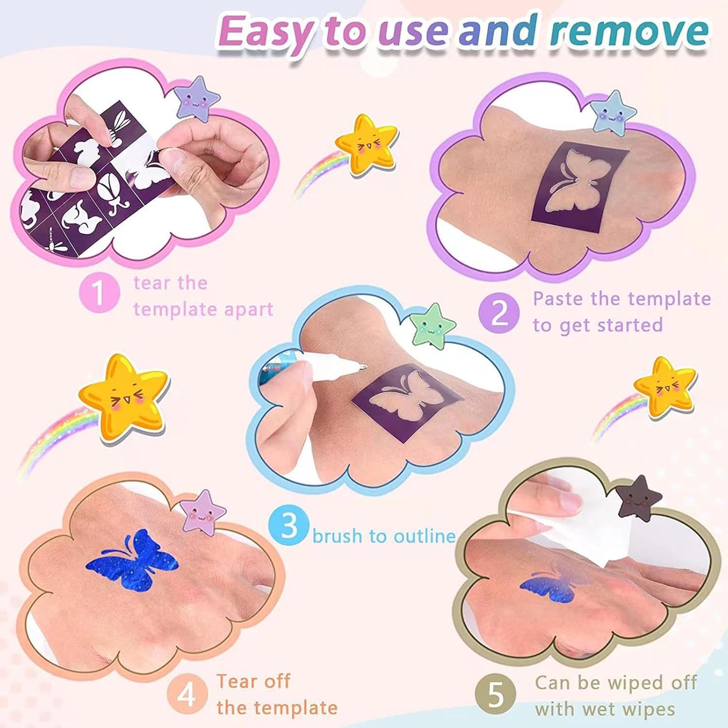 Our body paint markers are odorless, suitable for all skin tones. With 9 stencils and 2 stickers included, the multi-option applicability is endless. Plus, they make the perfect gift choice for any creative individual.