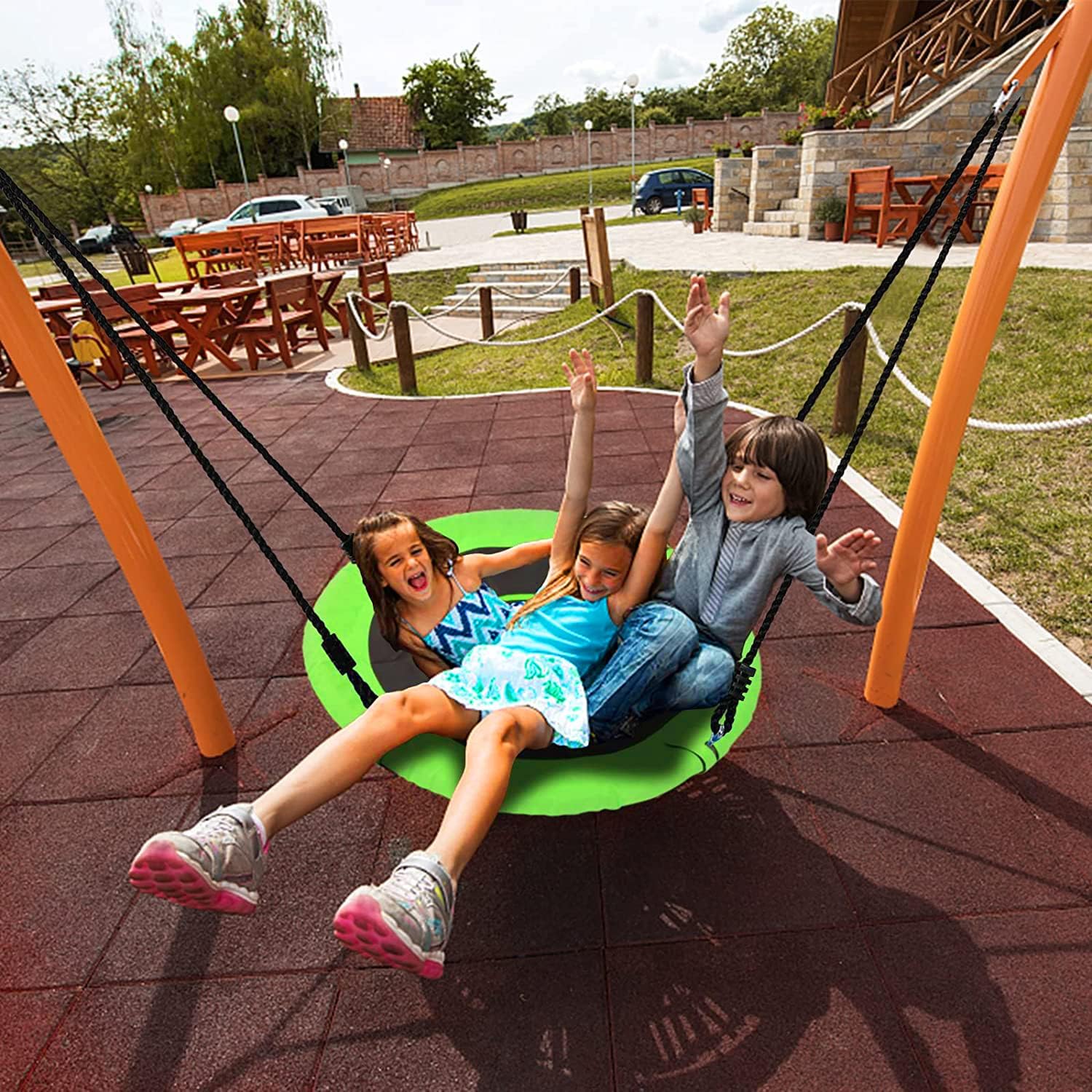 【Unique Design And Easy To Use】Our round swing seat for kids have four side handles for extra stability. These kids’ spider web swing are easy to attach to any swing set, tree or other playground equipment due to the tree swing straps included in the package. The saucer tree swing ropes is the perfect addition to any backyard! Swing for Kids Adults