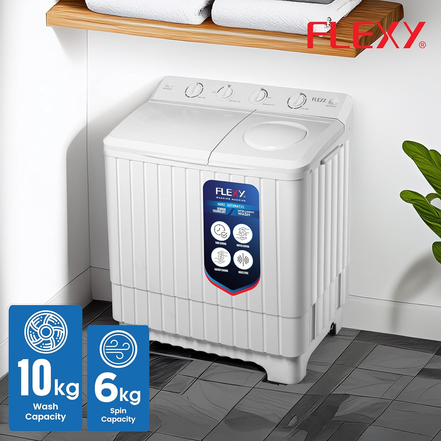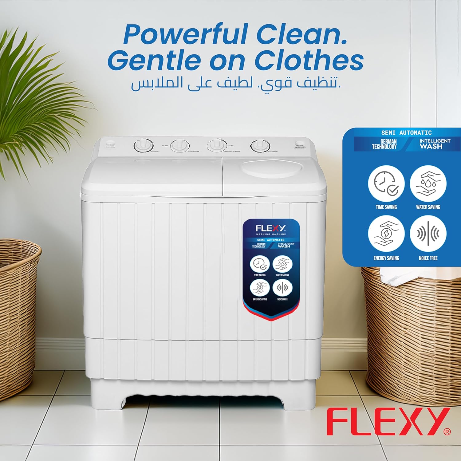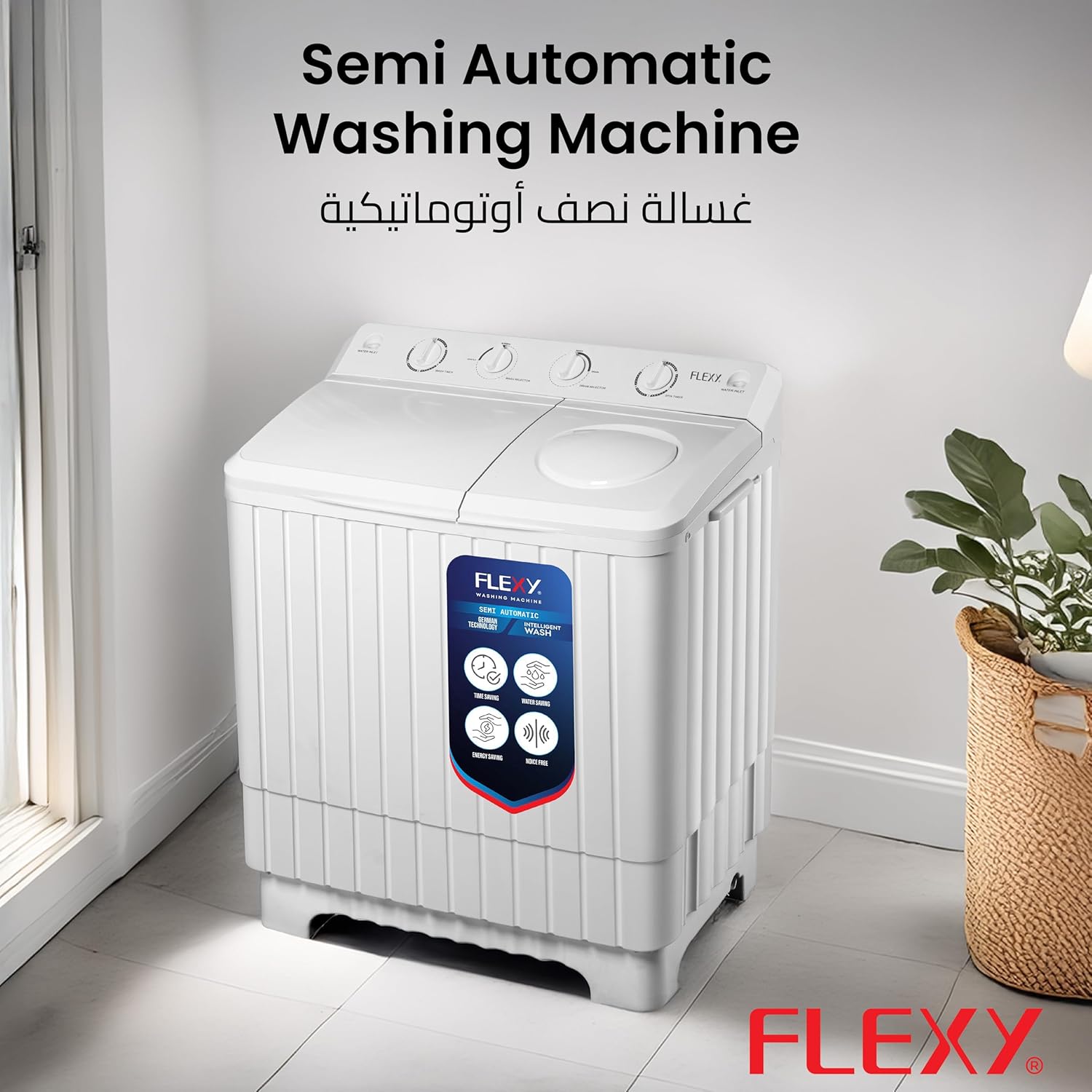Introducing the FLEXY 10KG Semi Automatic Washing Machine—a perfect blend of cutting-edge German technology, powerful cleaning performance, and thoughtful design that transforms your everyday laundry into an effortless, reliable, and highly efficient task. Engineered for families and busy households, this machine offers a generous 10KG wash capacity and 6KG spin capacity to handle heavy loads like bedding, towels, or large batches of clothes in fewer cycles, saving you valuable time. With two intelligent wash programs, it adapts to the needs of different fabric types and soil levels, ensuring your clothes get the care they deserve—from delicate silks to stubbornly soiled workwear. The 480W rated wash power turbo motor delivers deep-cleaning action, easily lifting tough stains and dirt while maintaining the softness and quality of your garments. Enjoy exceptional Turbo Clean technology, delivering a professional-level wash from the comfort of your home while conserving resources. Designed with time-saving, water-saving, and energy-saving features, this washing machine helps reduce utility bills without sacrificing performance, making it an environmentally conscious choice for modern households. Its noise-free operation means you can do laundry anytime—day or night—without disrupting the peace of your home, thanks to advanced insulation and vibration-dampening engineering. The durable, robust construction and ergonomic design make it easy to use, with intuitive controls, clear settings, and a user-friendly interface that’s perfect even for first-time users. The high-quality drum and spin tub ensure efficient rinsing and fast drying, cutting down on line-drying time and leaving clothes fresh and ready to wear. Inside, the machine’s German-engineered components deliver long-lasting reliability, maintaining consistent performance even after years of regular use. Built to resist wear, rust, and corrosion, its exterior design complements any laundry area with a sleek, modern aesthetic that reflects quality and care in every detail. Beyond utility, it’s about making life simpler—no more guesswork about wash cycles, no more wasted water or electricity, no more frustration with stubborn stains that won’t come out. With FLEXY, you gain peace of mind knowing you’re investing in a machine built to last, supported by a solid 2-year warranty for complete confidence in your purchase. Ideal for large families, shared apartments, or anyone needing a reliable, heavy-duty washing solution, this semi-automatic marvel bridges traditional washing simplicity with modern performance expectations. It’s easy to load, easy to control, easy to clean, and easy to love. Make your laundry chores more efficient, more effective, and far less stressful with a washing machine that works as hard as you do. Don’t wait to elevate your laundry game—choose FLEXY today and experience effortless, efficient, and powerful washing that saves time, energy, and money while delivering sparkling clean clothes every time. Click “Add to Cart” now to transform your home’s laundry experience with the advanced technology and trusted reliability of the FLEXY 10KG Semi Automatic Washing Machine!