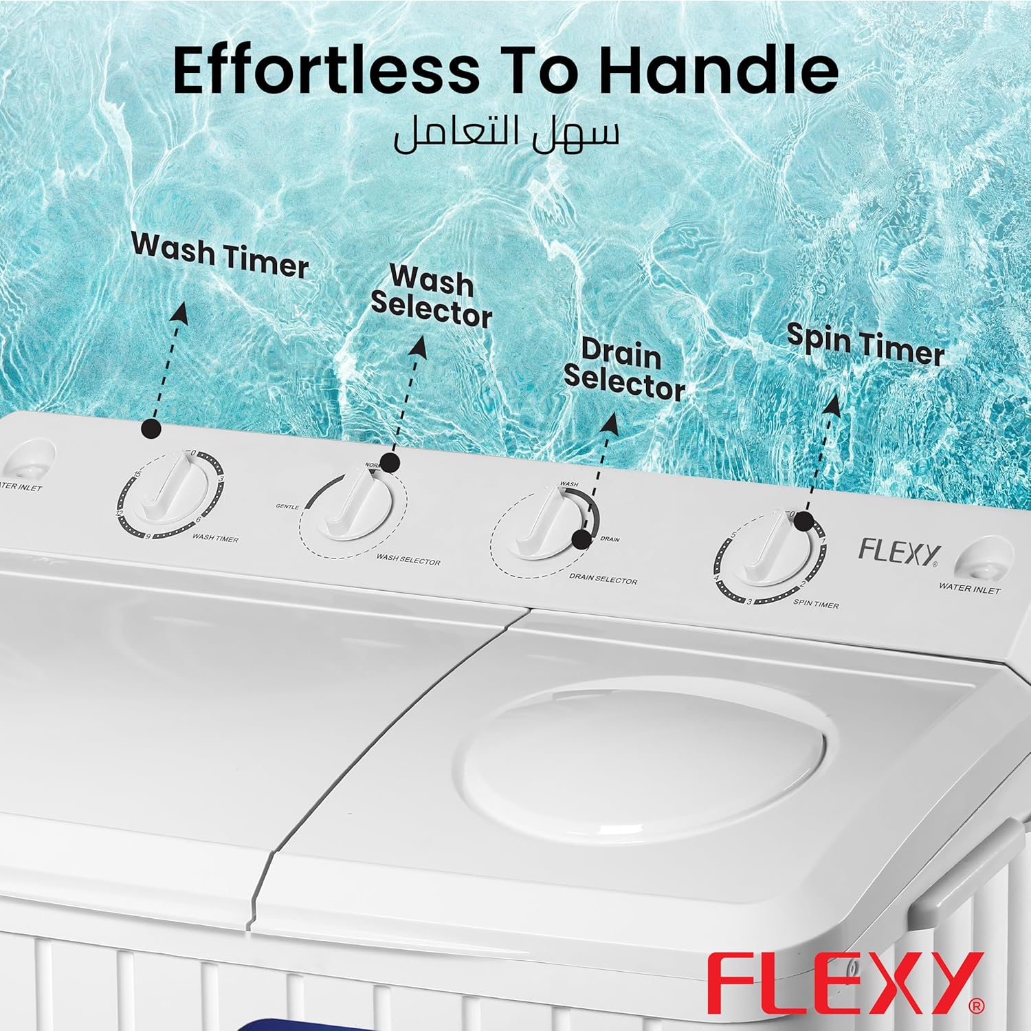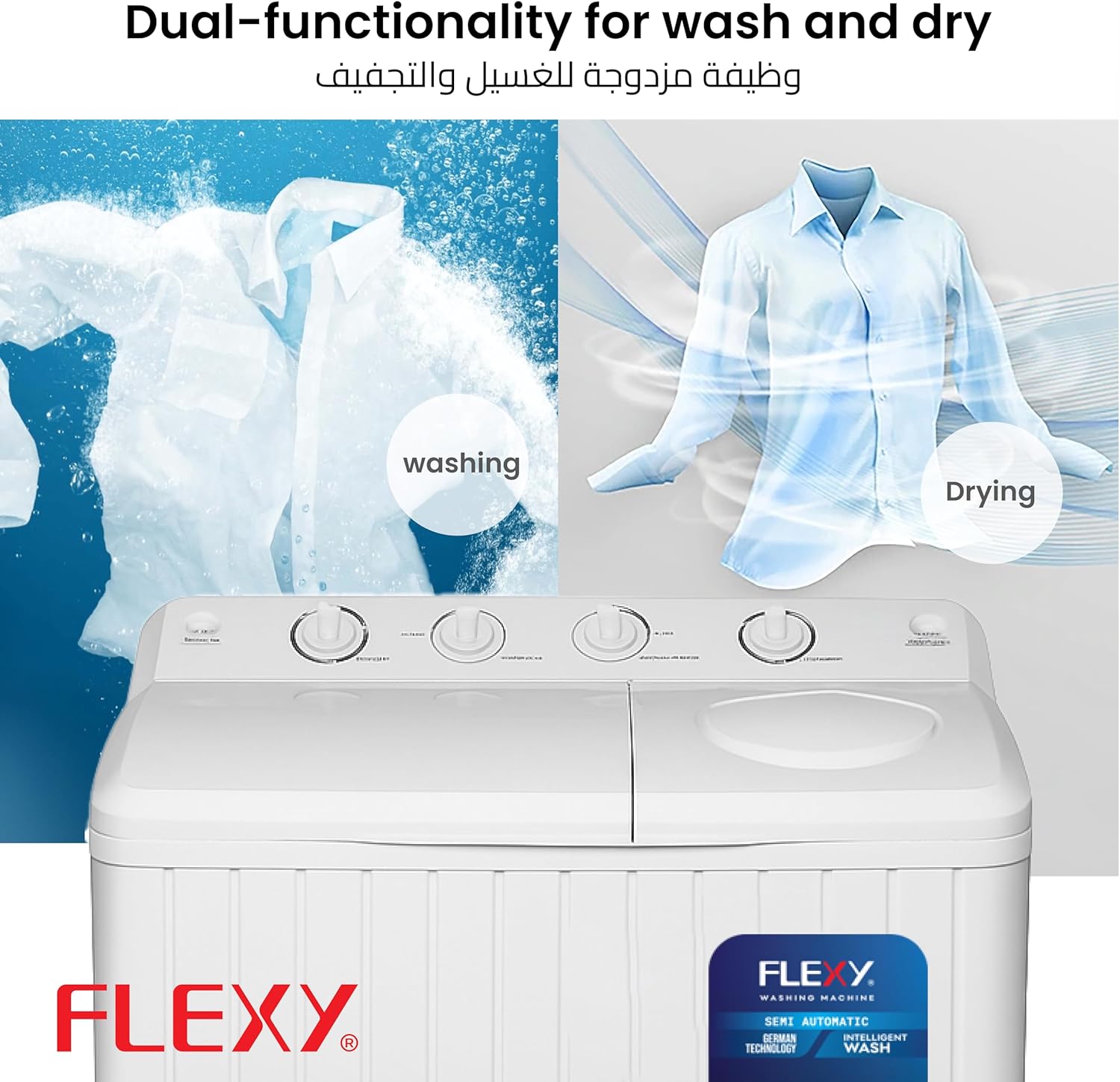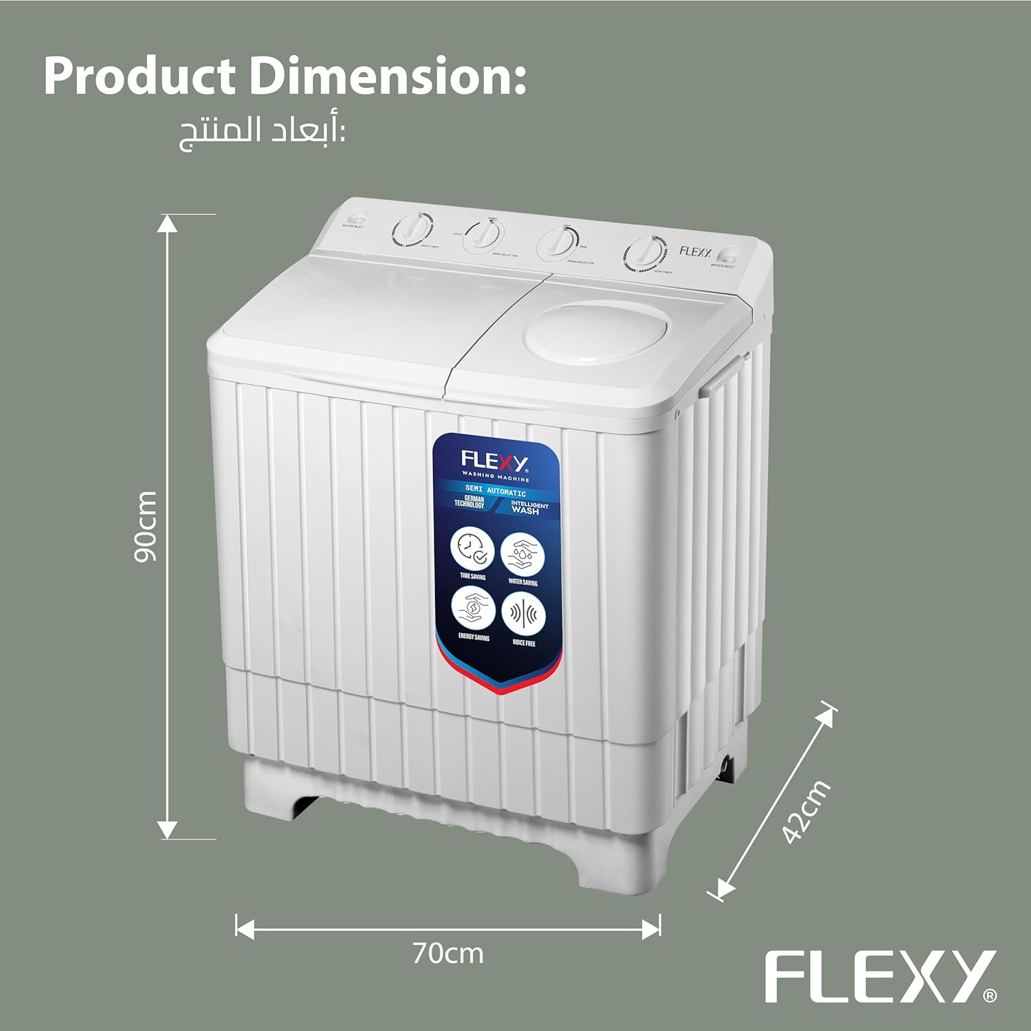 Introducing the FLEXY 10KG Semi Automatic Washing Machine—a perfect blend of cutting-edge German technology, powerful cleaning performance, and thoughtful design that transforms your everyday laundry into an effortless, reliable, and highly efficient task. Engineered for families and busy households, this machine offers a generous 10KG wash capacity and 6KG spin capacity to handle heavy loads like bedding, towels, or large batches of clothes in fewer cycles, saving you valuable time. With two intelligent wash programs, it adapts to the needs of different fabric types and soil levels, ensuring your clothes get the care they deserve—from delicate silks to stubbornly soiled workwear. The 480W rated wash power turbo motor delivers deep-cleaning action, easily lifting tough stains and dirt while maintaining the softness and quality of your garments. Enjoy exceptional Turbo Clean technology, delivering a professional-level wash from the comfort of your home while conserving resources. Designed with time-saving, water-saving, and energy-saving features, this washing machine helps reduce utility bills without sacrificing performance, making it an environmentally conscious choice for modern households. Its noise-free operation means you can do laundry anytime—day or night—without disrupting the peace of your home, thanks to advanced insulation and vibration-dampening engineering. The durable, robust construction and ergonomic design make it easy to use, with intuitive controls, clear settings, and a user-friendly interface that’s perfect even for first-time users. The high-quality drum and spin tub ensure efficient rinsing and fast drying, cutting down on line-drying time and leaving clothes fresh and ready to wear. Inside, the machine’s German-engineered components deliver long-lasting reliability, maintaining consistent performance even after years of regular use. Built to resist wear, rust, and corrosion, its exterior design complements any laundry area with a sleek, modern aesthetic that reflects quality and care in every detail. Beyond utility, it’s about making life simpler—no more guesswork about wash cycles, no more wasted water or electricity, no more frustration with stubborn stains that won’t come out. With FLEXY, you gain peace of mind knowing you’re investing in a machine built to last, supported by a solid 2-year warranty for complete confidence in your purchase. Ideal for large families, shared apartments, or anyone needing a reliable, heavy-duty washing solution, this semi-automatic marvel bridges traditional washing simplicity with modern performance expectations. It’s easy to load, easy to control, easy to clean, and easy to love. Make your laundry chores more efficient, more effective, and far less stressful with a washing machine that works as hard as you do. Don’t wait to elevate your laundry game—choose FLEXY today and experience effortless, efficient, and powerful washing that saves time, energy, and money while delivering sparkling clean clothes every time. Click “Add to Cart” now to transform your home’s laundry experience with the advanced technology and trusted reliability of the FLEXY 10KG Semi Automatic Washing Machine!