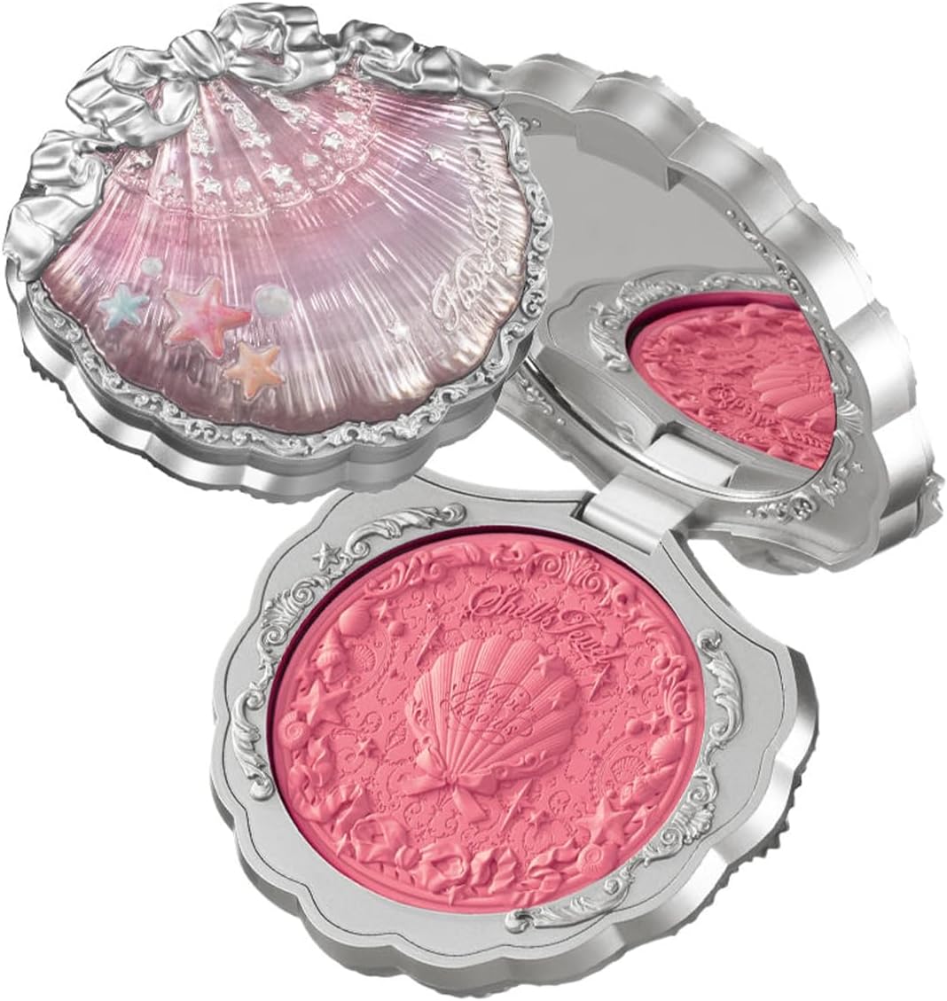 Formulated with moisturizing vitamin E, this skin-loving blush keeps your cheeks looking and feeling healthy all day. The silky powder texture is beginner-friendly, buildable, and blends effortlessly, whether you prefer a subtle hint or bold color payoff. Housed in a holographic seashell compact with sculpted silver accents, it’s as much a statement piece as it is a makeup essential.