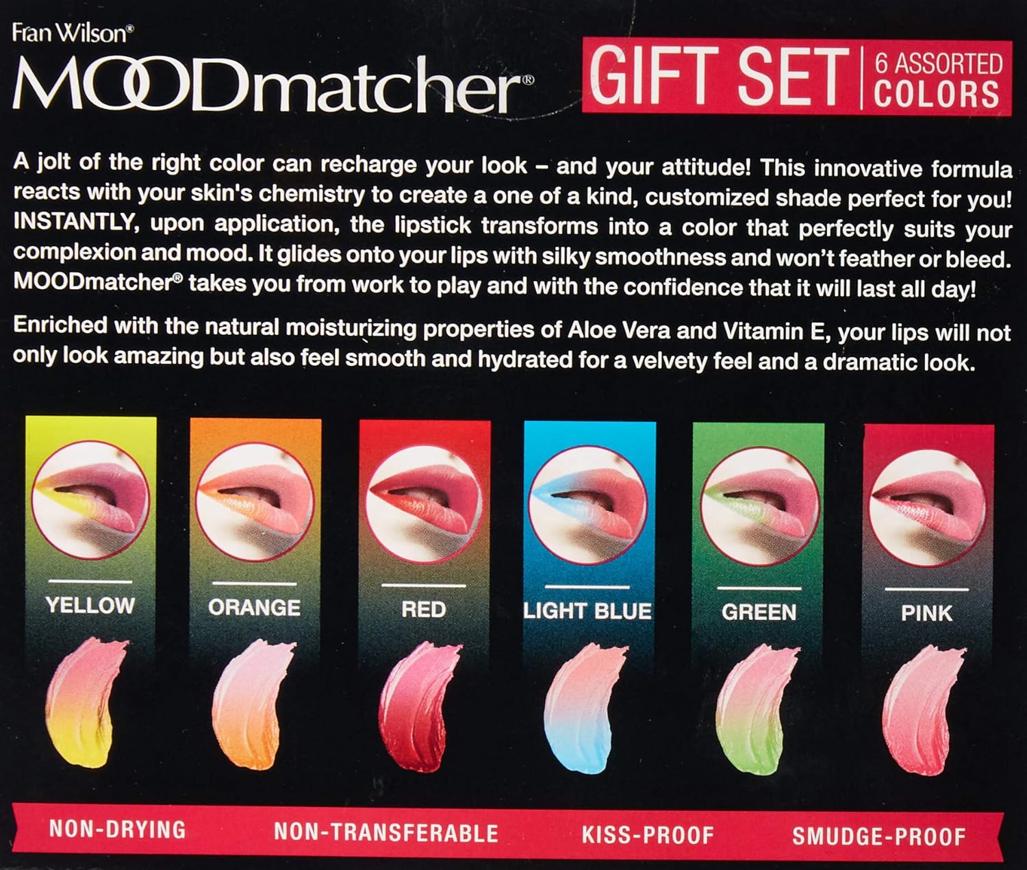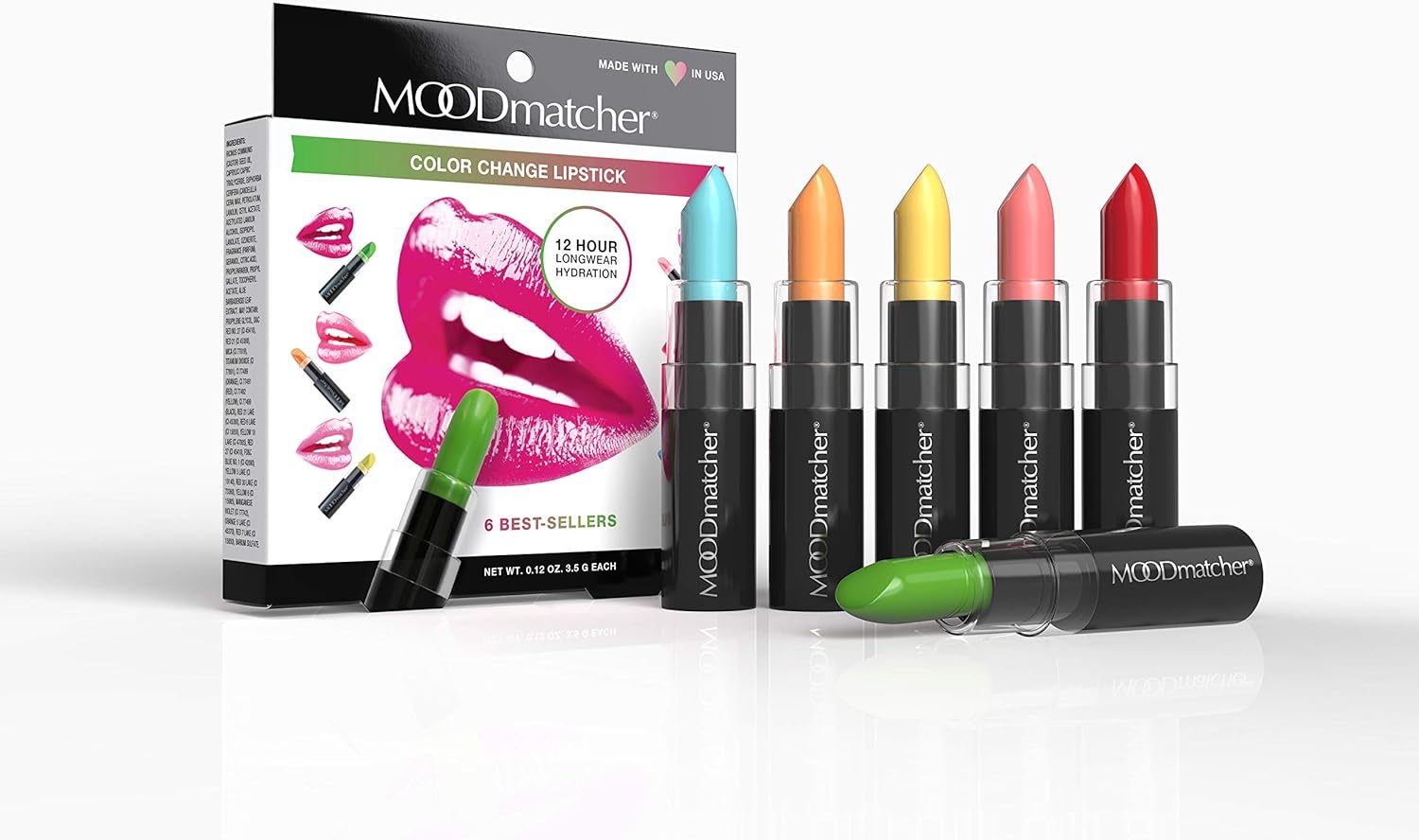 Each color changes instantly to a shade totally unique and and personalized for you. MOODmatcher lipstick is formulated to respond to your body chemistry.