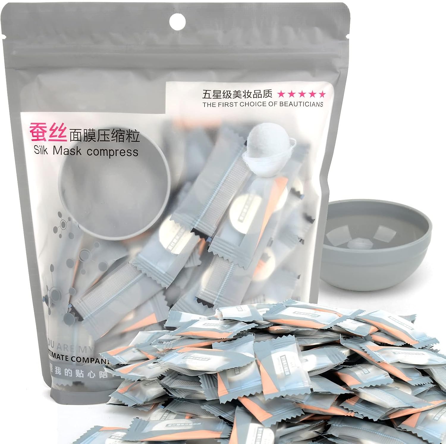 100PCS natural cotton dry pressed Silk Mask granules, Silk Mask granules are dry press mask paper, no mask products. Additional mask products (such as cosmetics, milk and syrup) should be added to the mask bowl. Complimentary mask bowl, making it effortless to create your own disposable face masks at home.