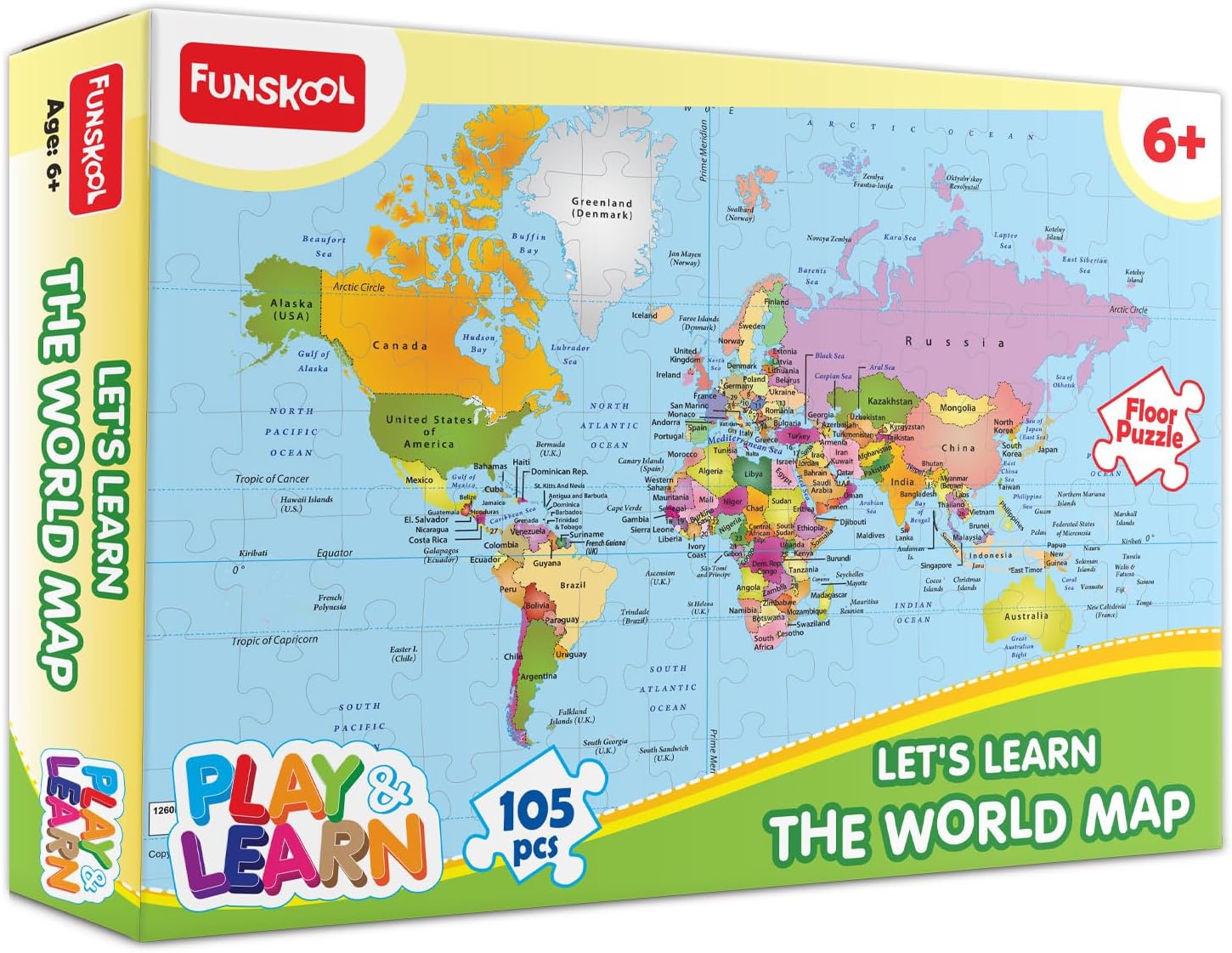 Take your kids on a world tour with Funskool World Map Puzzles game. This educational game is very interesting where kids have to assemble 105 pieces to form a complete map of the world. This jigsaw puzzle is ideal to play on floor and provides knowledge about various countries.