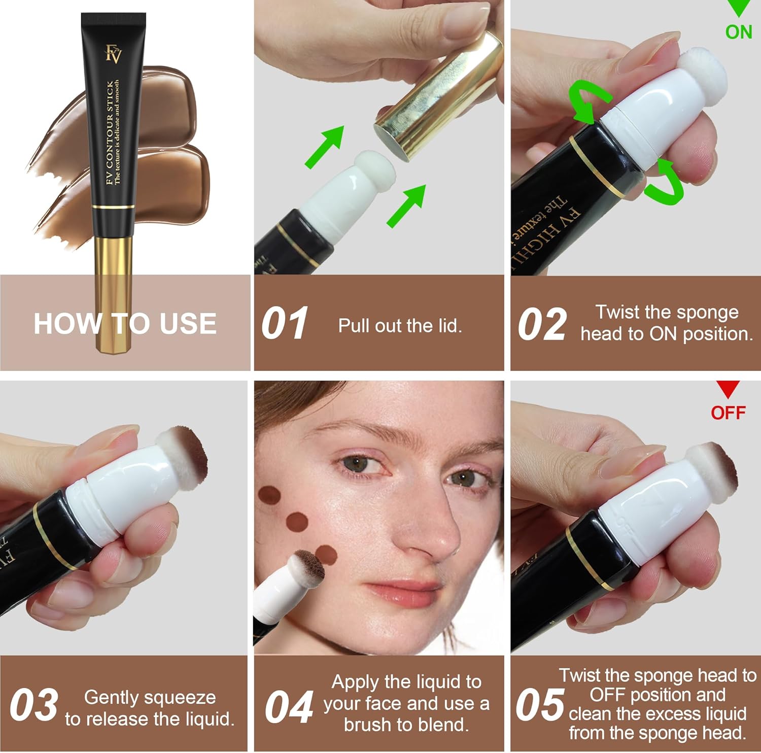 Seamless Blendability: Experience the smooth and creamy texture of our FV liquid contour wand that blends effortlessly with your makeup brush or beauty blender. Its non-greasy formula guarantees a natural skin-like finish.