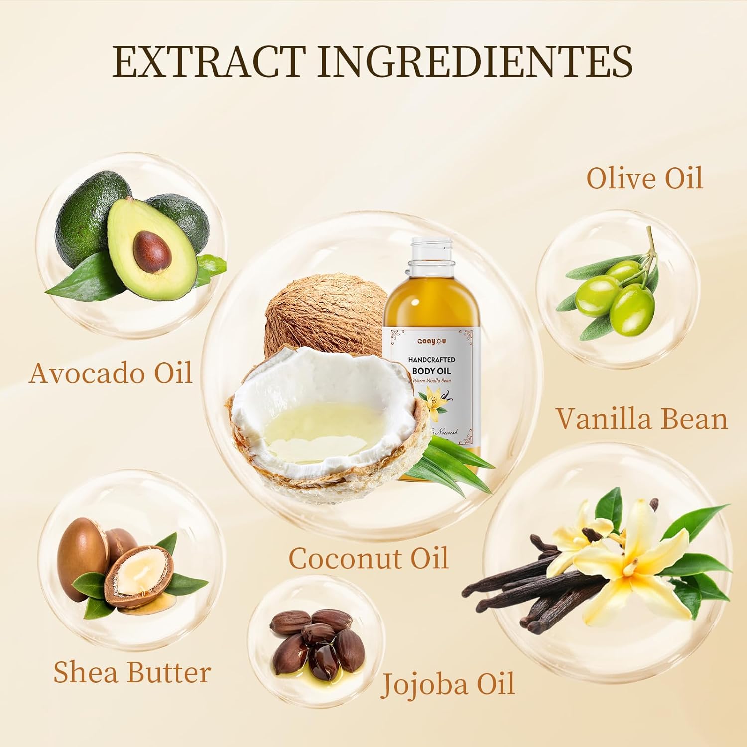 【Crafted with Natural Ingredients】: Our natural body oil features a blend of vanilla oil, coconut oil, sweet almond oil, olive oil, avocado oil, jojoba oil, and glycerin, ensuring a premium, hand crafted product that nourishes your skin.