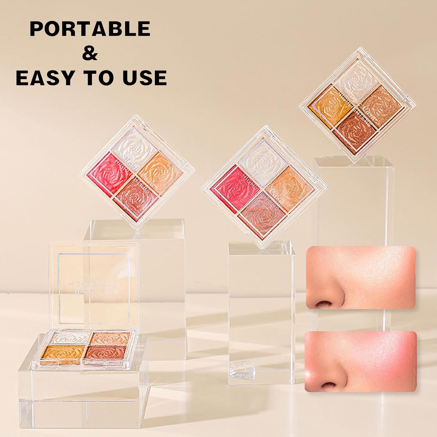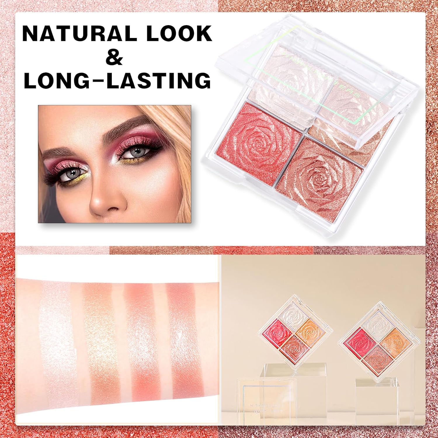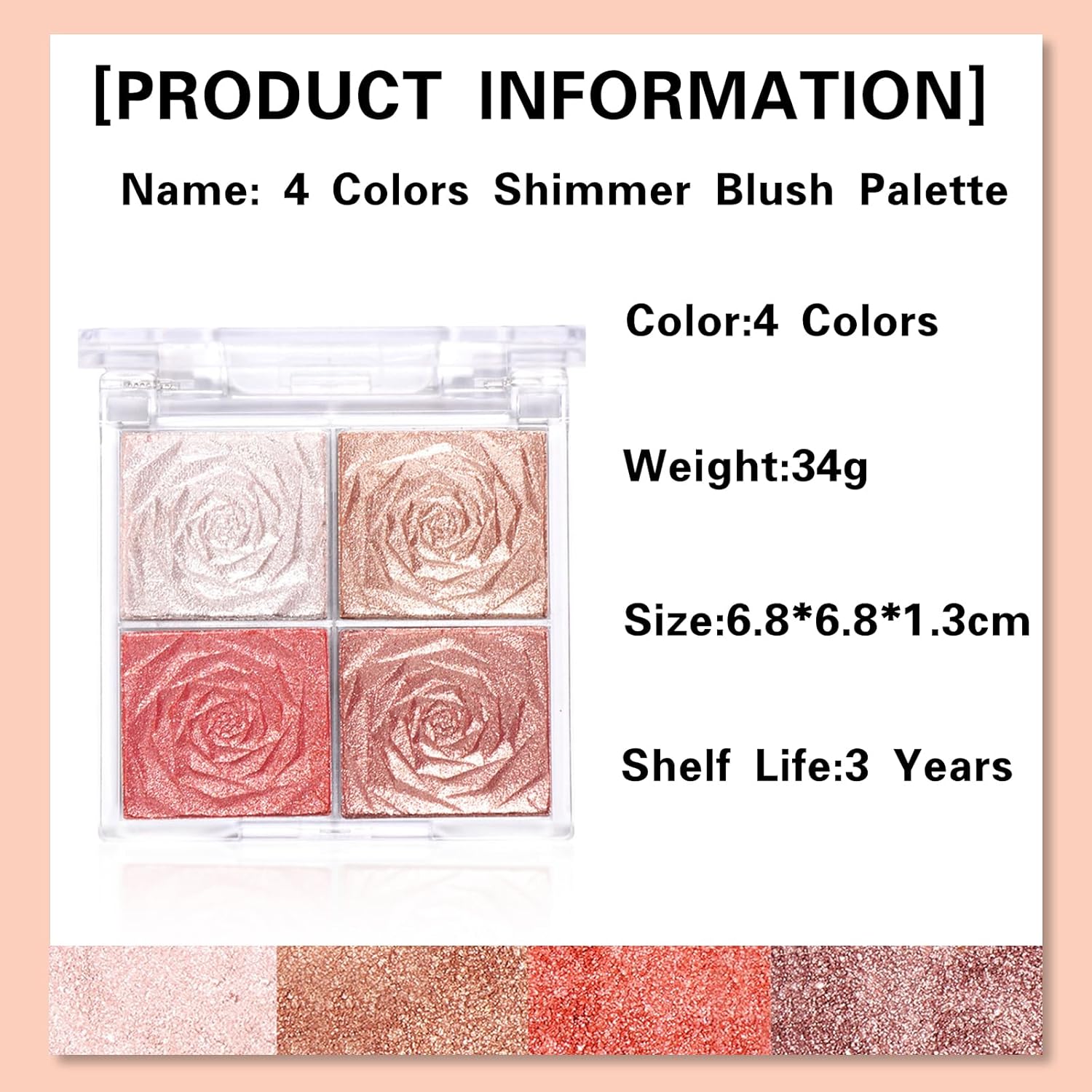 【PORTABLE & EASY TO USE】 The Four-color Blush Palette is made in the shape of a delicate flower, and its compact size makes it easy to store in makeup bags, so it is perfect as a gift for female friends. Shimmer Blushers is very easy to use and remove, and can easily meet your makeup needs.
