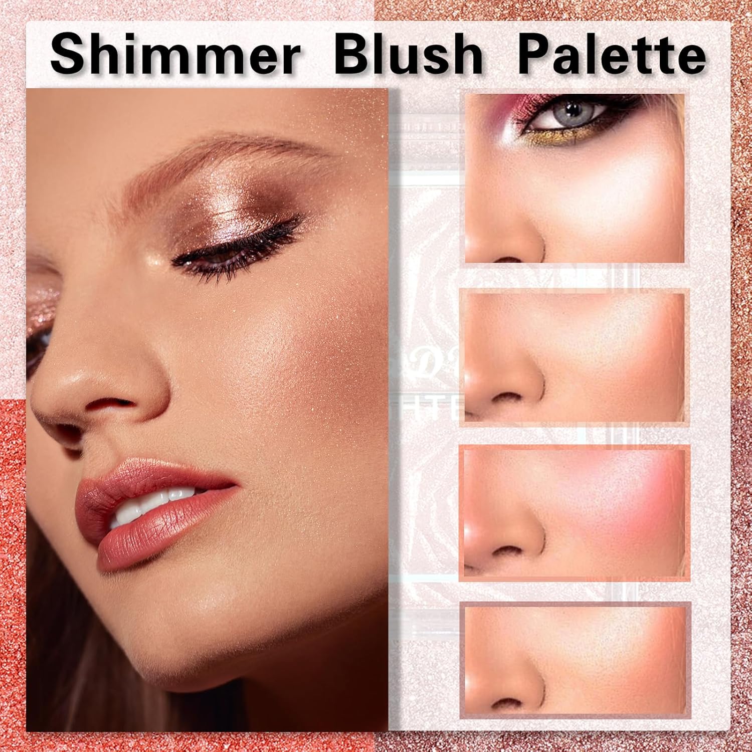 【GLITTER EFFECT】 The Blush Palette contains shimmer powder, which has a fine skin-friendly texture and does not easily irritate the skin, allowing you to hold your makeup comfortably all day long. And the Shimmer Blusher color is vibrant and intense, which can make your makeup more attractive and show off your beauty.