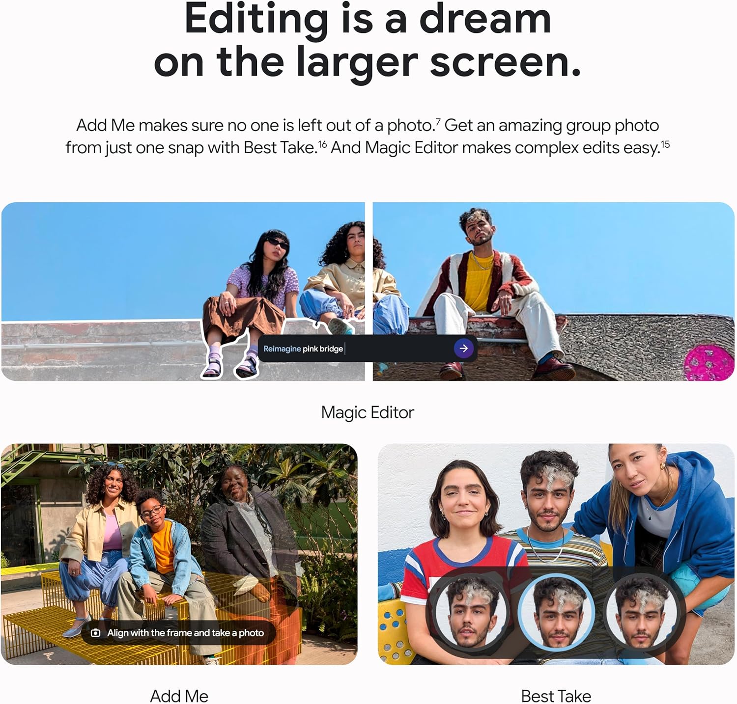 Google Pixel 9 Pro Fold with Gemini has the largest display on a phone and brings you the best of Google AI first, so you can do more, effortlessly[1]