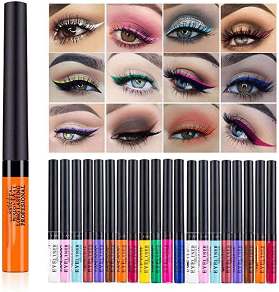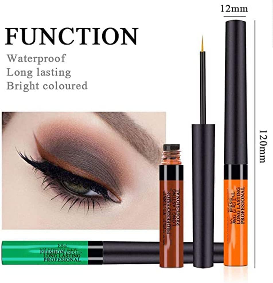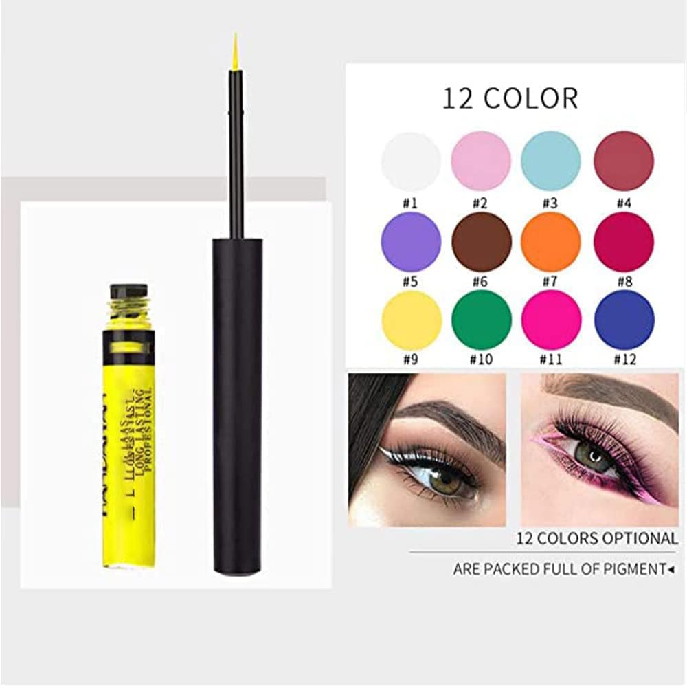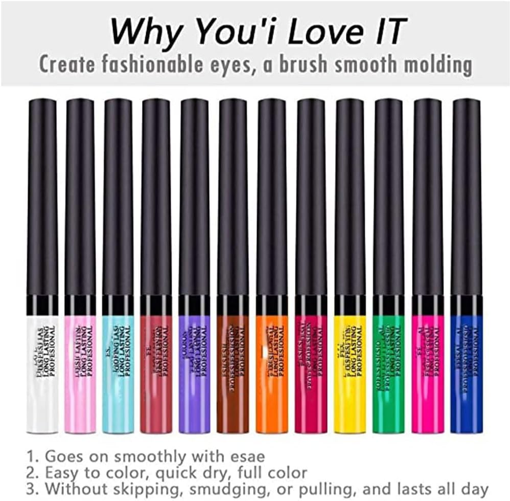 12 colors rainbow colorful liquid eyeliners are ideal for party, cosmetic show, daily makeup, Including popular colors such as white, black, red, brown, blue, etc. making you be the eye-catcher on every occasion.