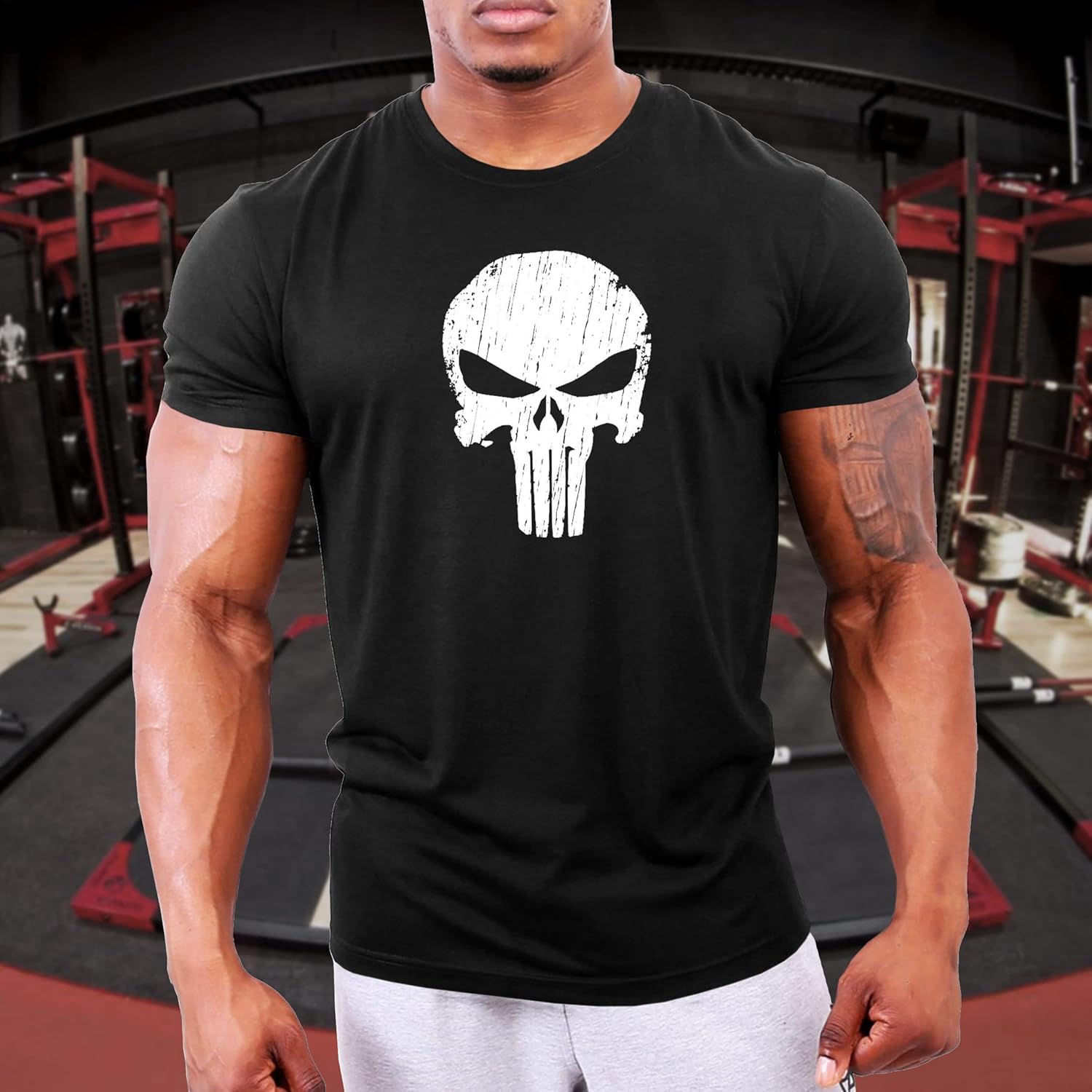 GYMTIER Skull Men’s Gym T-Shirt Bodybuilding Training Workout Lifting Top Clothing
