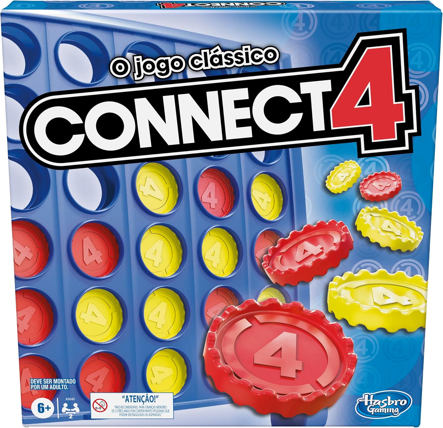 The Connect 4 game is a classic strategy game in which 2 players go head-to-head in a battle to own the grid! Players choose yellow or red discs. They drop the discs into the grid, starting in the middle or at the edge to stack their colored discs upwards, horizontally, or diagonally. Use strategy to block opponents while aiming to be the first player to get 4 in a row to win. The Connect 4 game is a great choice for a play date, a rainy day activity, or anytime your kids want a fun game to play with a friend. It’s fun to go 4 the win! For ages 6 and up. Hasbro Gaming and all related trademarks and logos are trademarks of Hasbro, Inc.