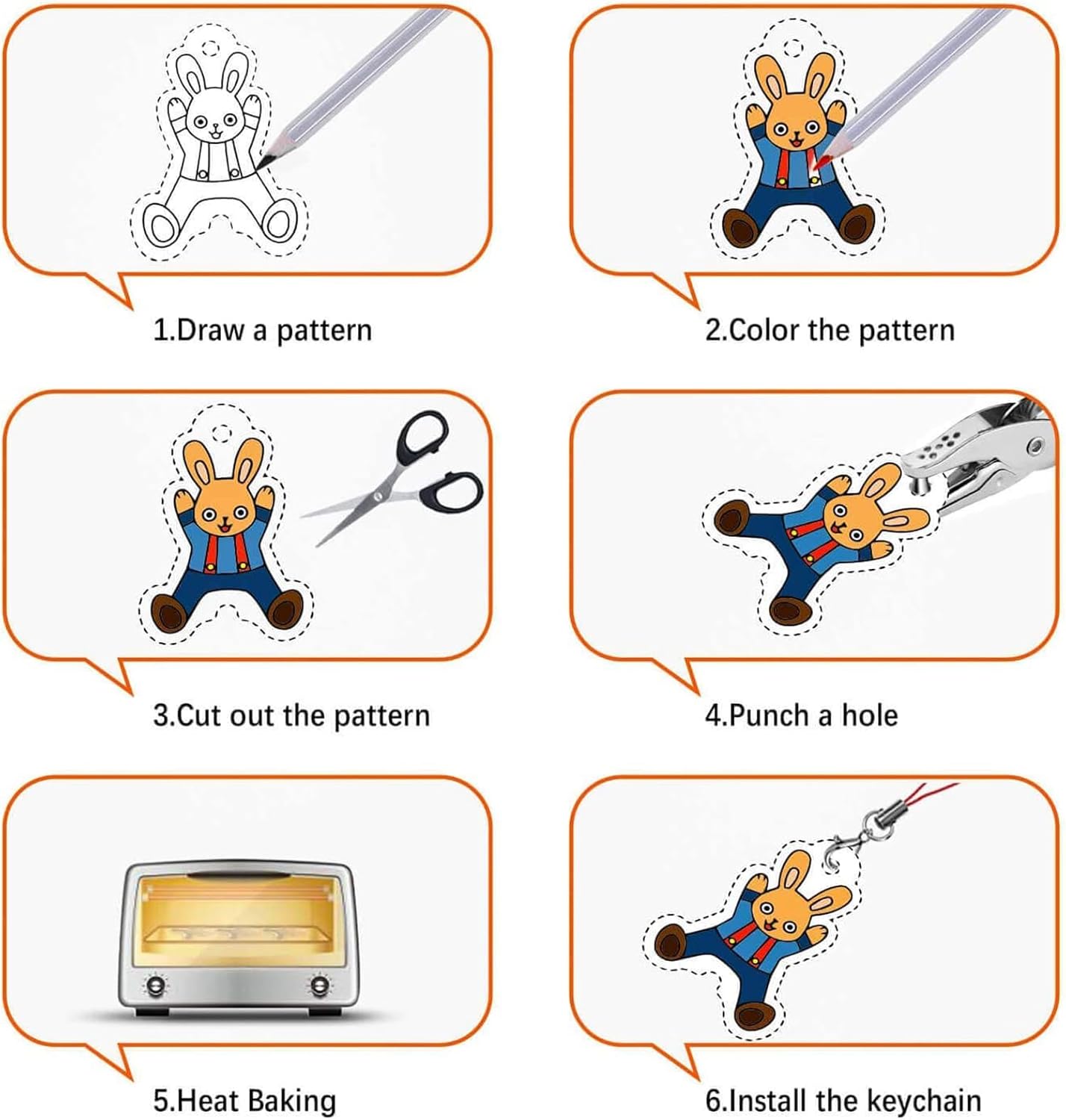 🐋【Simple to Use】This heat shrink plastic sheet kit is very easy for primary craftsman. Just draw and color your favorite art, cut it out with scissors and then punch a hole, bake and shrink. It’s such a fun craft to make! Recommended for children 5 years of age and older and adult supervision required during baking