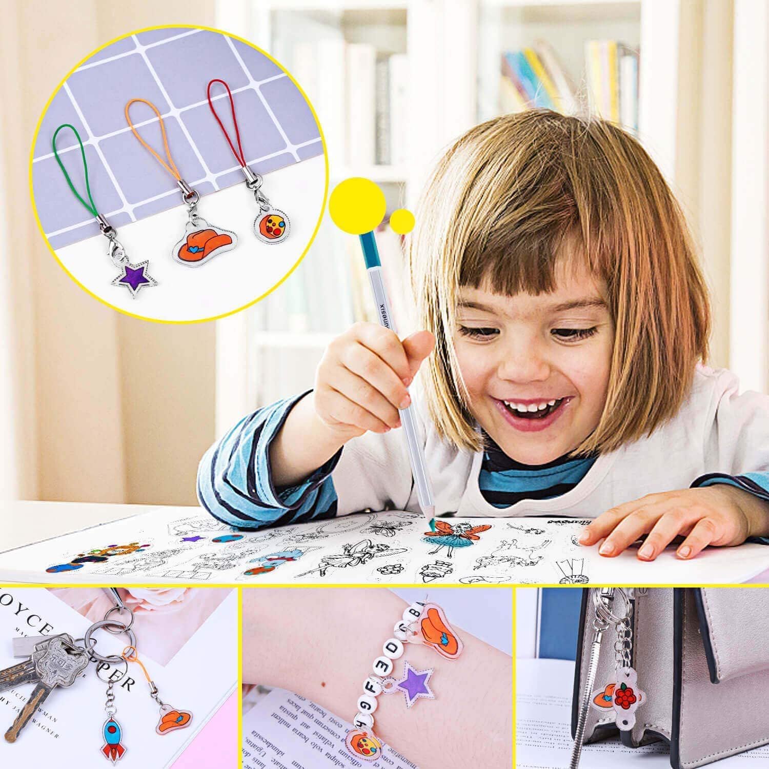 Heat shrinky plastic sheets are easy and fun for kids and adults to DIY key chains, earrings, jewelry and other crafts. It offers them interesting and creative hands-on craft experience.
