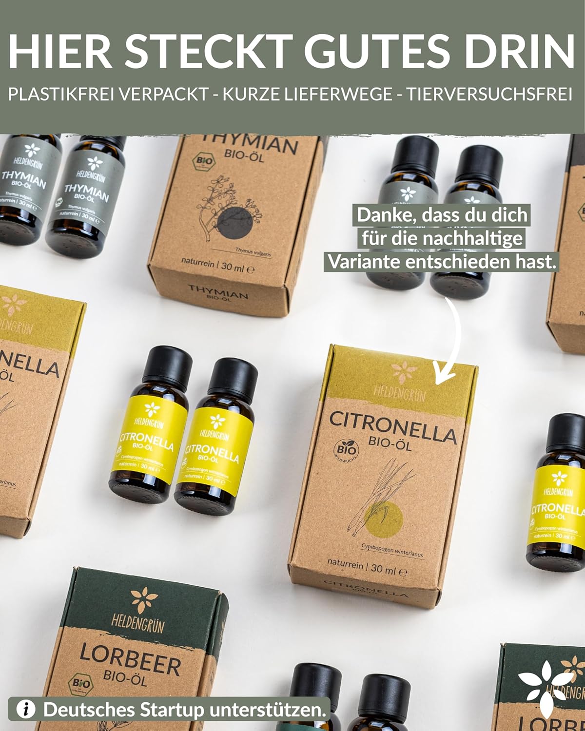 [German startup with heart] – Heldengrün – more than just essential oils. As a certified organic company (DE-ÖKO-005), we offer you German customer service and the highest quality you can count on.