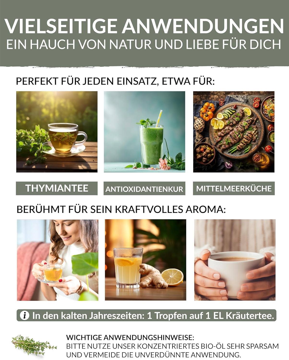[Family Tradition from Greece] – Grown and processed with dedication in our Greek family business, our organic thyme oil stands for freshness and quality that you can smell and taste.