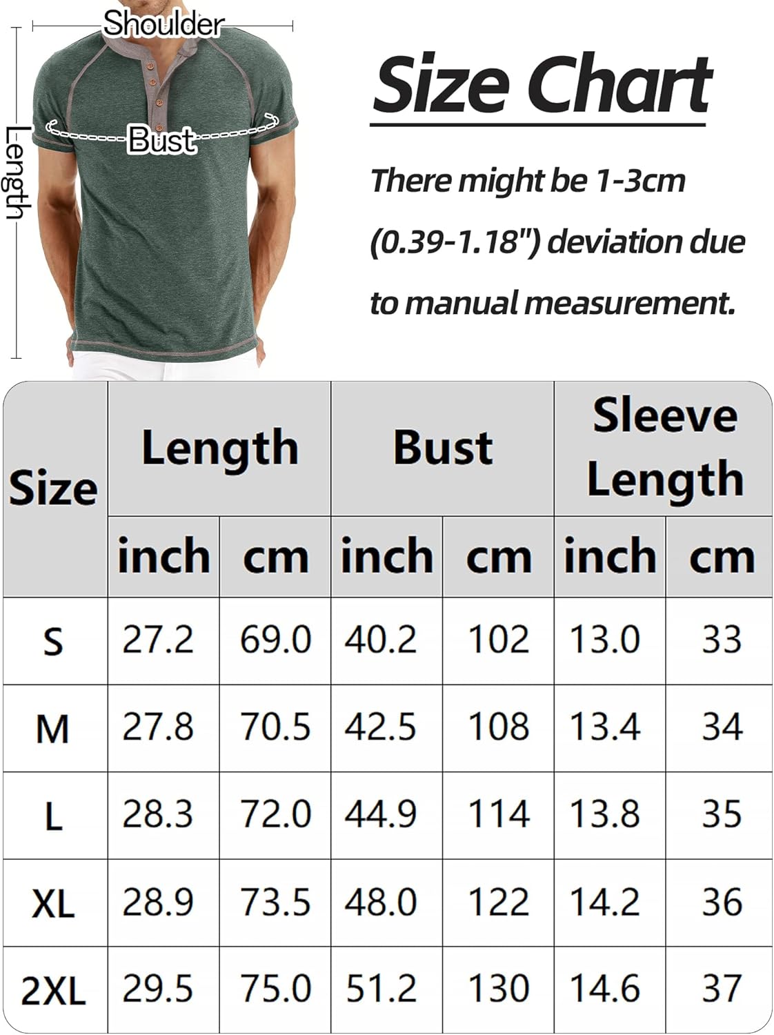 HENORD Men’s Henleys T-Shirt Short Sleeve Lightweight Top Relaxed Breathable Casual Top Buttons Placket Round Neck Shirts Tee Basic Shirt