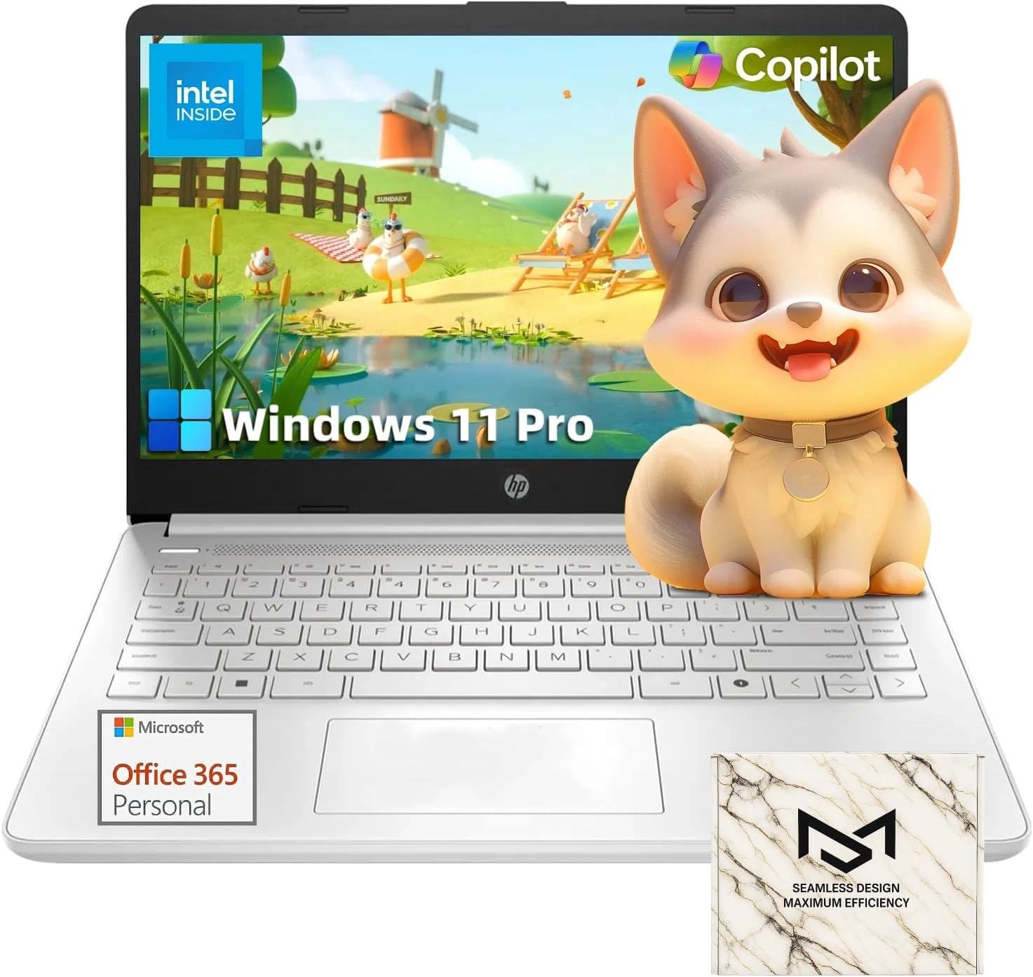 HP 14-Inch 2025 Laptop – Intel Quad-Core, 32GB RAM, 128GB UFS + 256GB MicroSD, Windows 11 Pro, Wi-Fi 6, Bluetooth 5.4, Long Battery Life, Fast Charging – Ideal for Home, Work & School