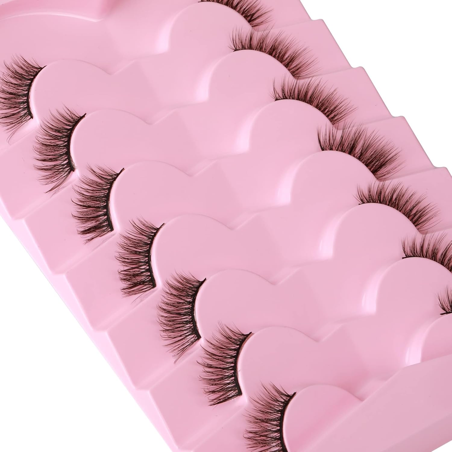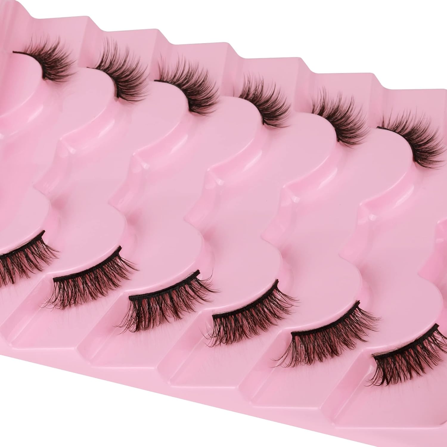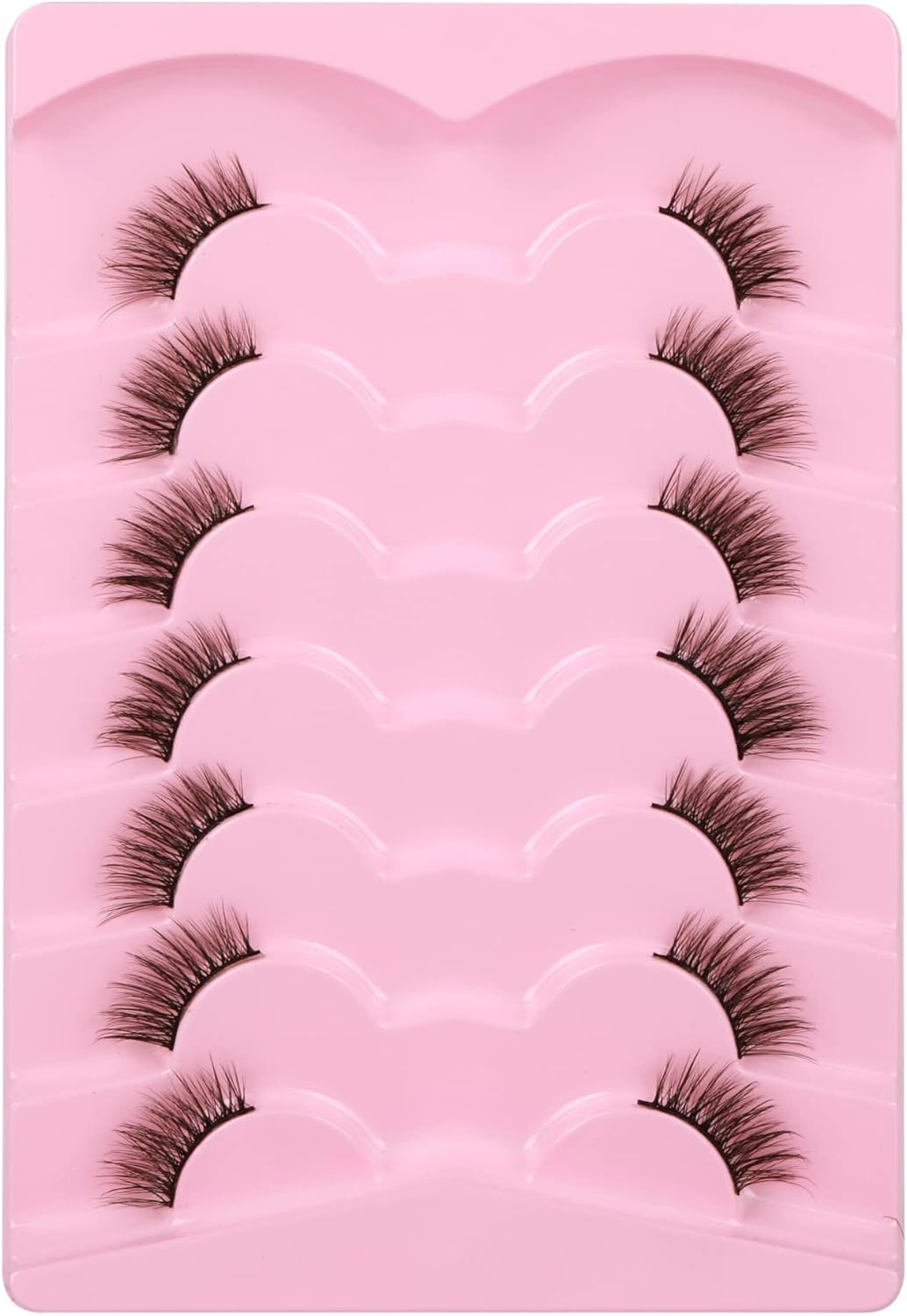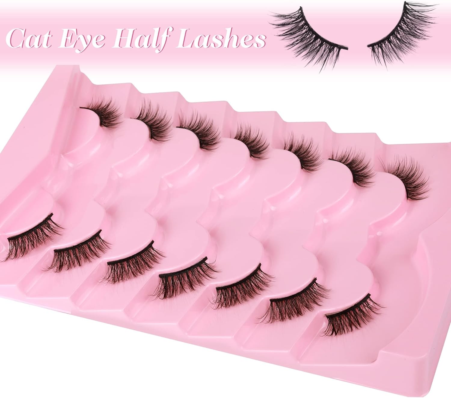 Transform your eye look with these stunning false eyelashes that offer a natural yet captivating cat-eye effect. This value pack includes 7 pairs of wispy, fluffy faux mink lashes featuring a multi-layered, crisscross design that adds dimension and drama to your eyes. The half-lash style provides a seamless blend with your natural lashes, creating an effortlessly glamourous appearance. Each pair is lightweight and comfortable to wear, perfect for both special occasions and everyday enhancement. The carefully crafted design ensures the lashes appear natural whilst adding length and volume. These lashes can be trimmed to fit your eye shape perfectly, allowing for a customised application. Whether you’re aiming for a subtle daytime look or evening glamour, these versatile lashes will help you achieve your desired style. Suitable for makeup enthusiasts of all skill levels, from beginners to professionals.