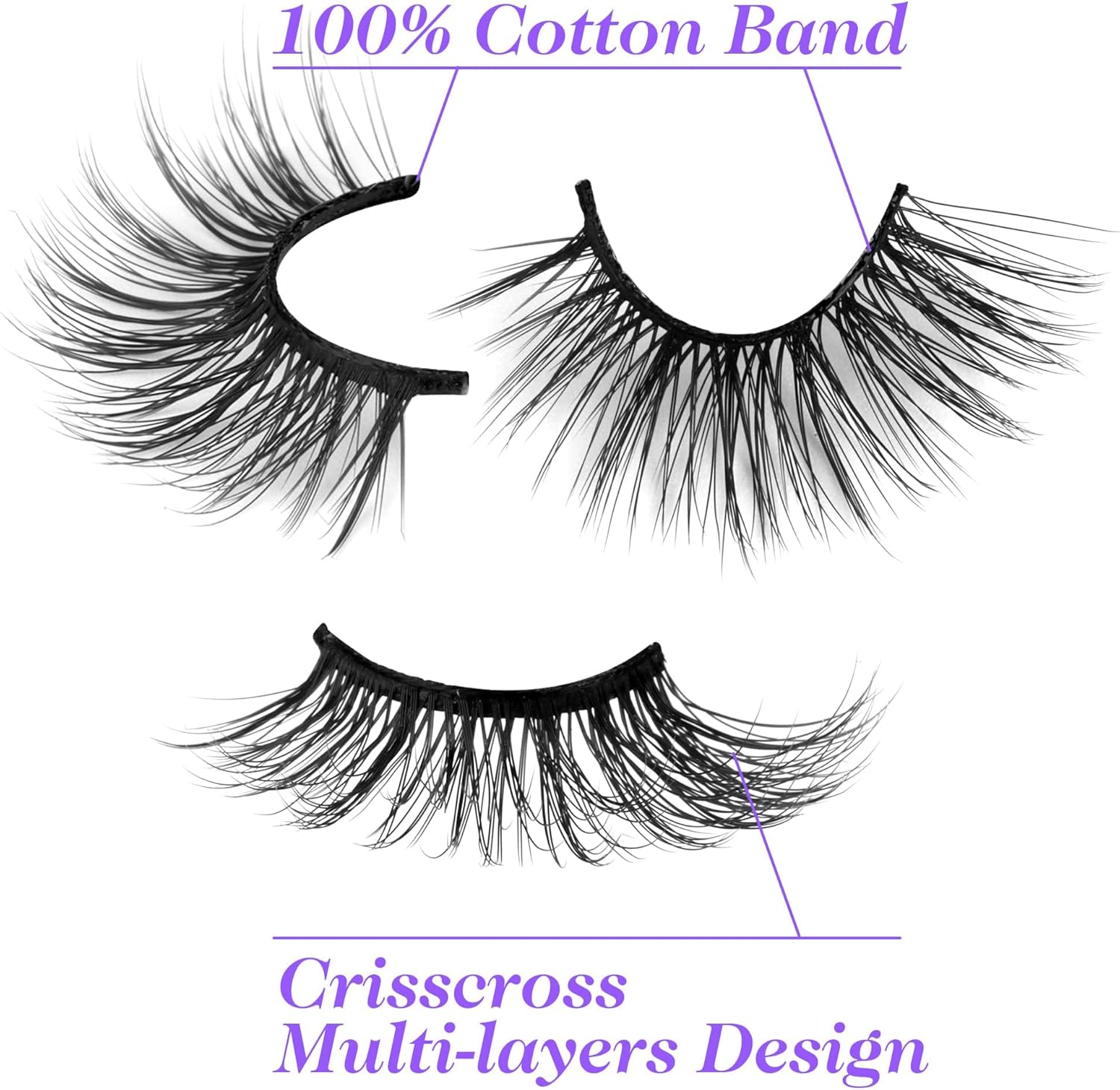Half Lashes with Featured Design – The Crisscross Multi-layers design give a sense of playful to the classical look. Black cotton band is like you’ve drawn eyeliner. We keep exploring the different cute lash designs only to give more choices to my customers.