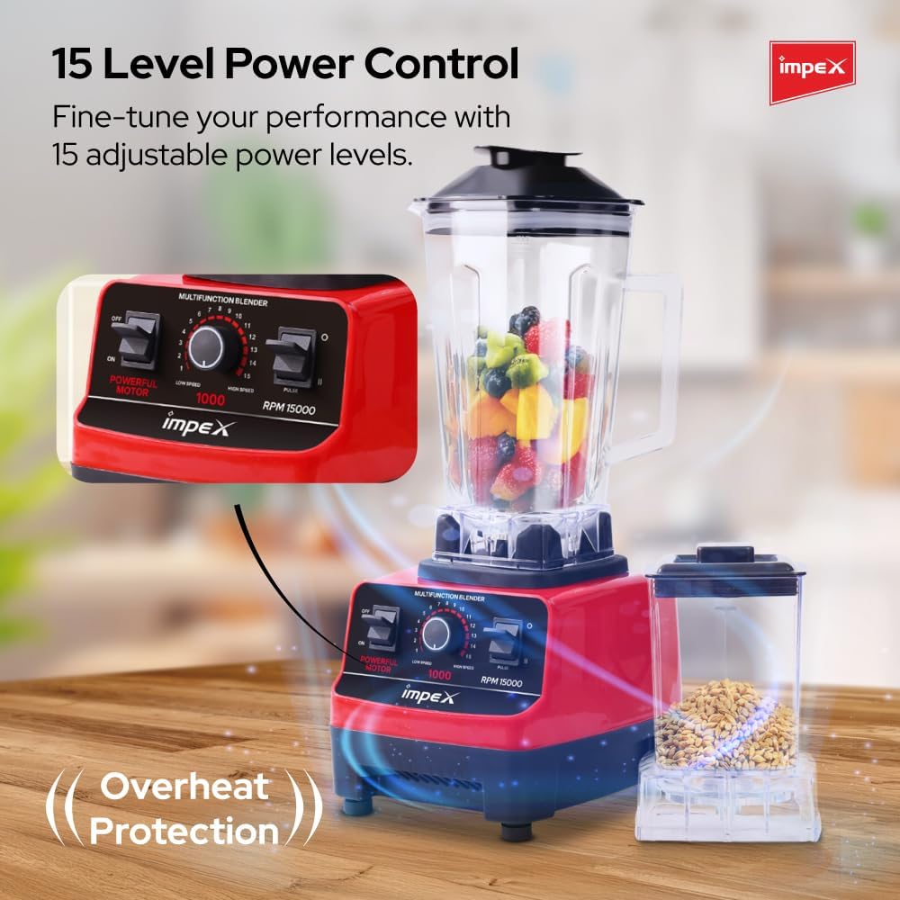 شراء Impex Multi-Function 2-in-1 Blender | High-Speed Mixer Grinder | 2L Large Liquidizing Jar, 0.3L Grinding Jar | 6 Stainless Steel Blades | 15 Power Levels, Overheat Protection, Anti-Skid Base | BL1002 اون لاين من امازون او نون وحراج Impex Multi-Function 2-in-1 Blender | High-Speed Mixer Grinder | 2L Large Liquidizing Jar, 0.3L Grinding Jar | 6 Stainless Steel Blades | 15 Power Levels, Overheat Protection, Anti-Skid Base | BL1002