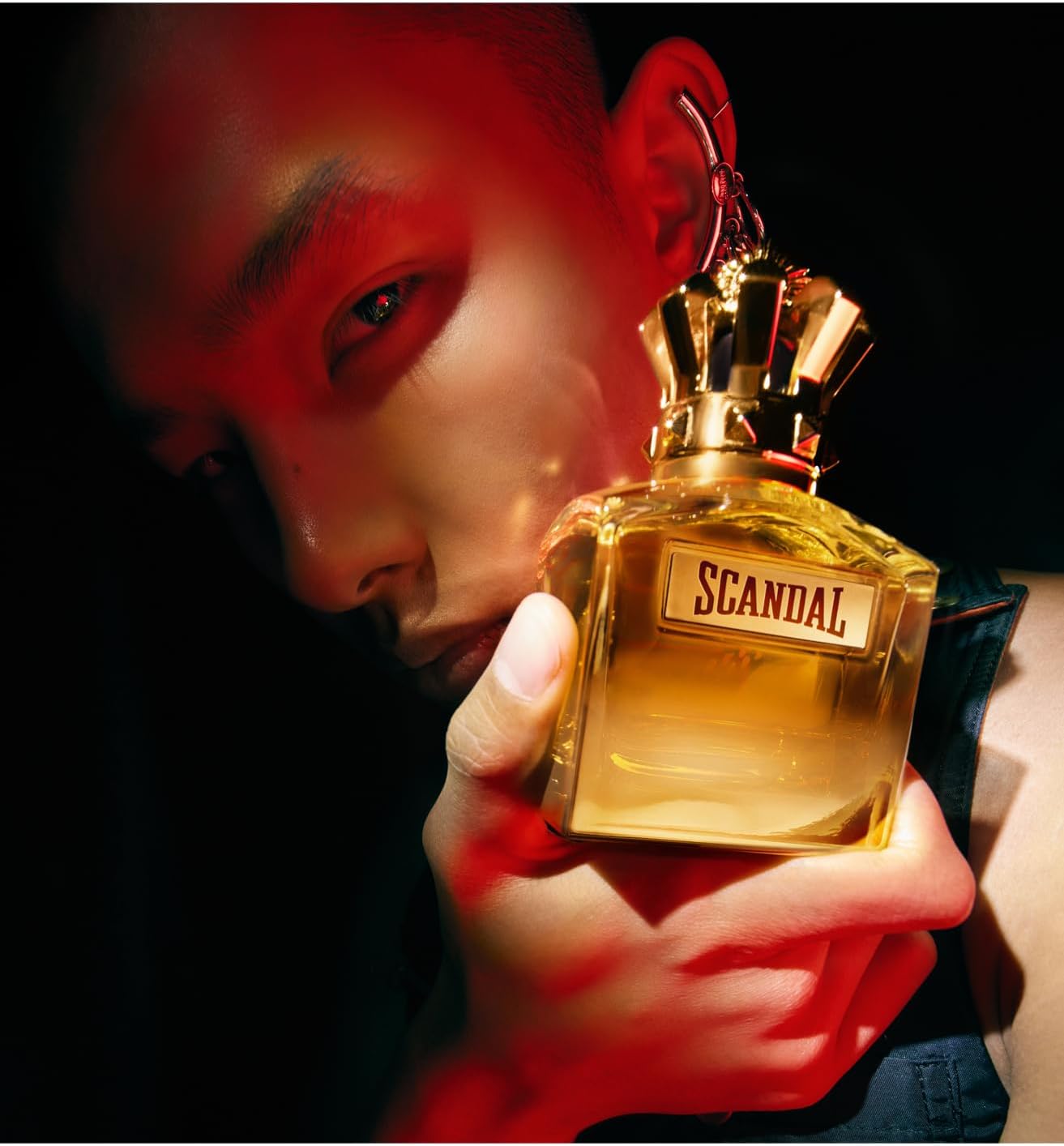 Jean Paul Gaultier Scandal Absolu Parfum Spray for men, launching in 2024,Woody Fragrance. The top note is Mirabelle ,The middle note is Chestnut and base note is Sandalwood.