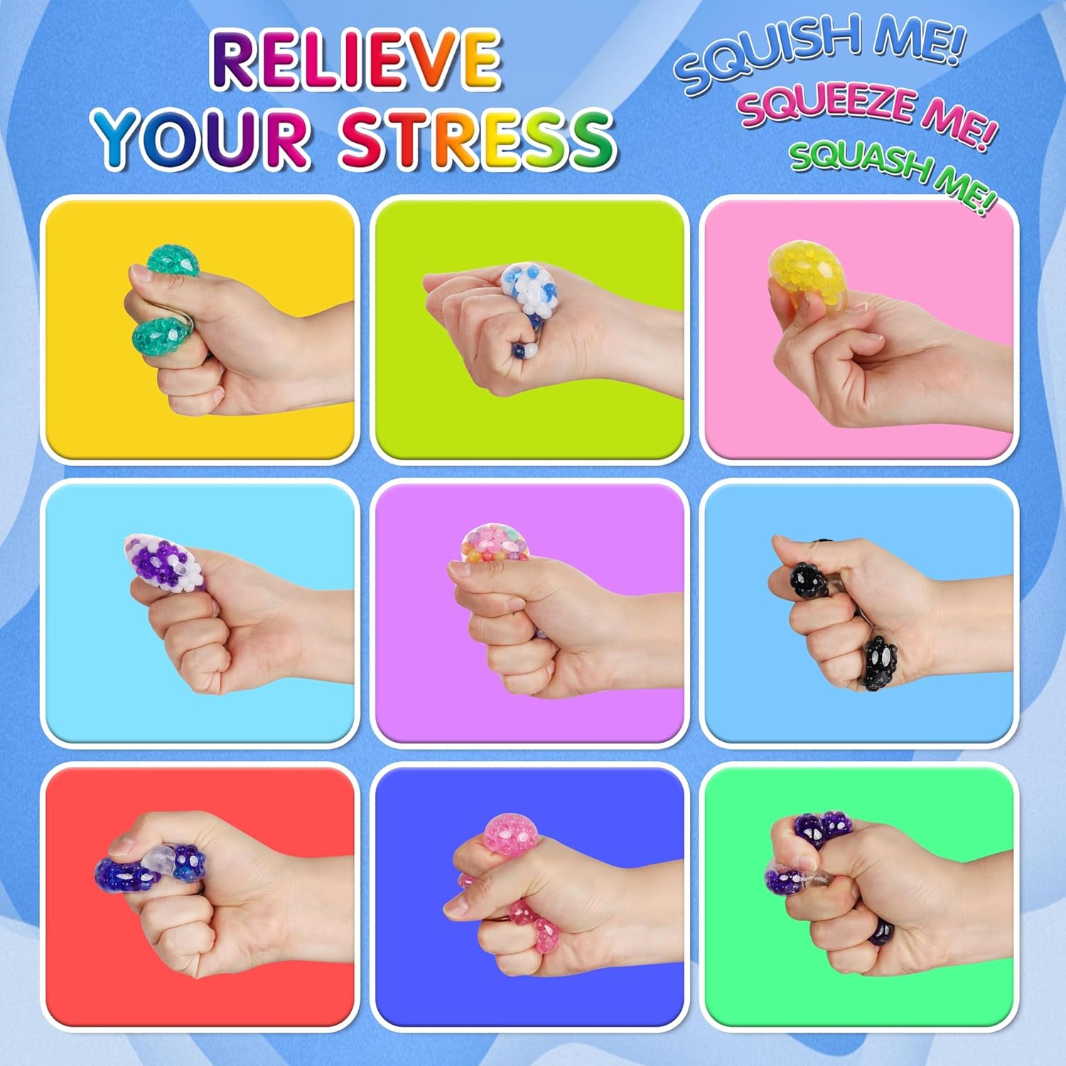 Enjoy the different fun with this multi-combination set of stress balls. Have fun squeezing stress away for hours