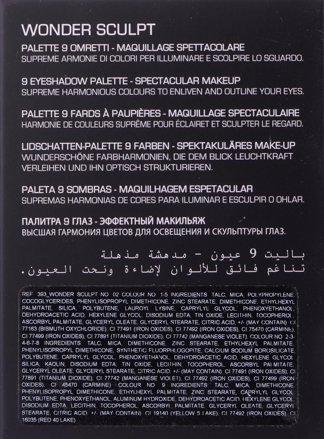 Karaja Wonder Sculpt Eyeshadow Palette has a completely matte and smoothing texture that makes the eyes the center of attention. Excellent quality and easy to apply thanks to the new technology that turns this set into a gem. This opaque eyeshadow creates a long-lasting, discreet look that’s bursting with color, making your eyes the center of attention. The palette of 9 shades combines matte and pearlescent shadows. The silky texture of the product provides dense, even coverage and perfectly smooth blending. Available in No.02 color shade.