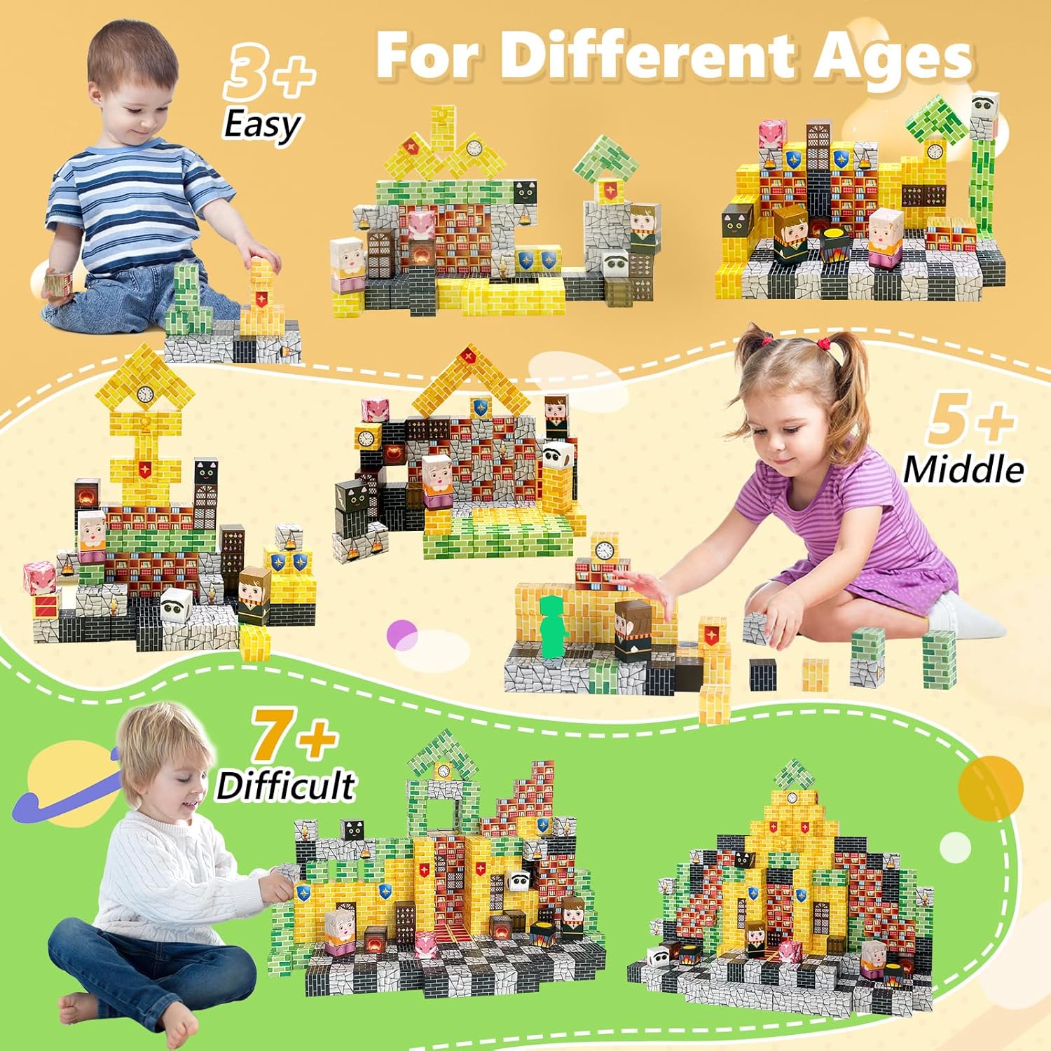 👍【Durable】The magnetic blocks are enhanced with strong magnetic force, ensuring each block has magnetic properties for a secure connection and improved stability during play. The smooth edges are good for children of all ages, and the sturdy construction eliminates concerns of blocks being torn apart or swallowed. Ensuring a durable and gaming experience.