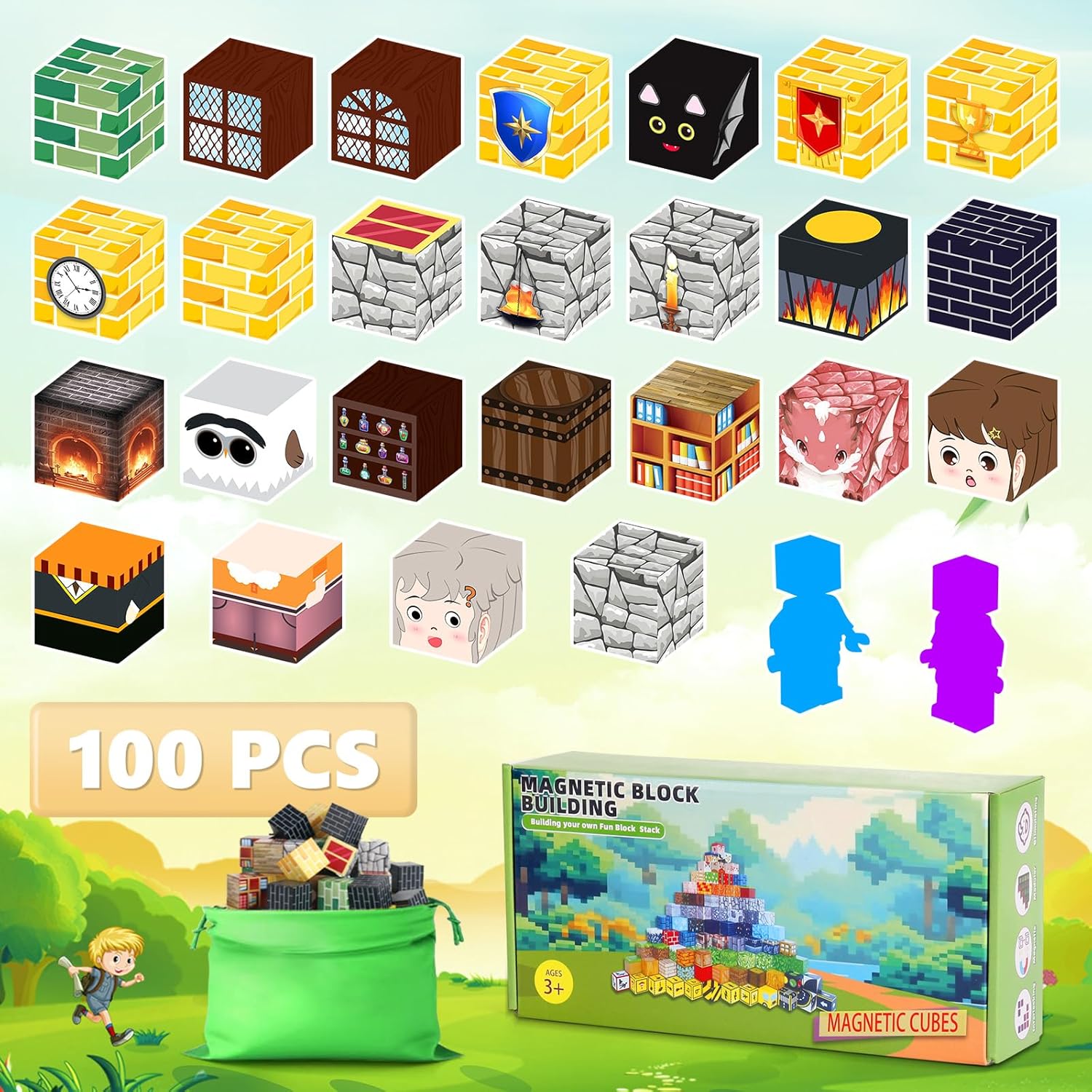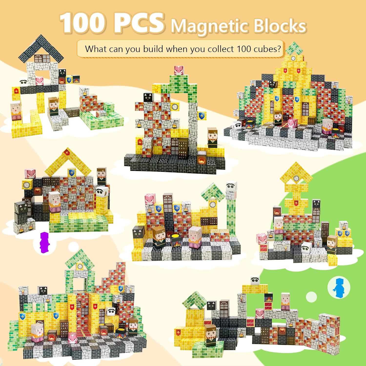 🎉【Magnetic Tiles Set】The Magnetic World set includes 100 magnetic blocks, providing children with ample opportunities to explore various building possibilities. It opens up a world of possibilities for everyone, from simple to challenging constructions, offering endless creative opportunities for children to design and build a variety of structures, turning their imaginative visions into reality.