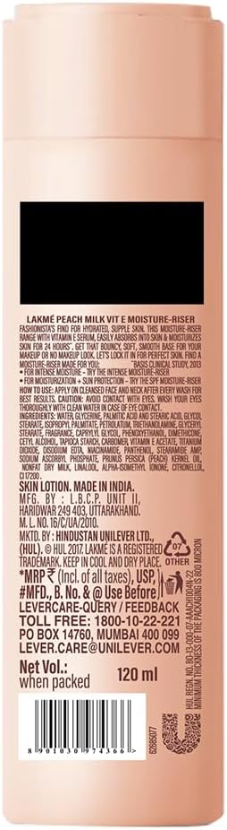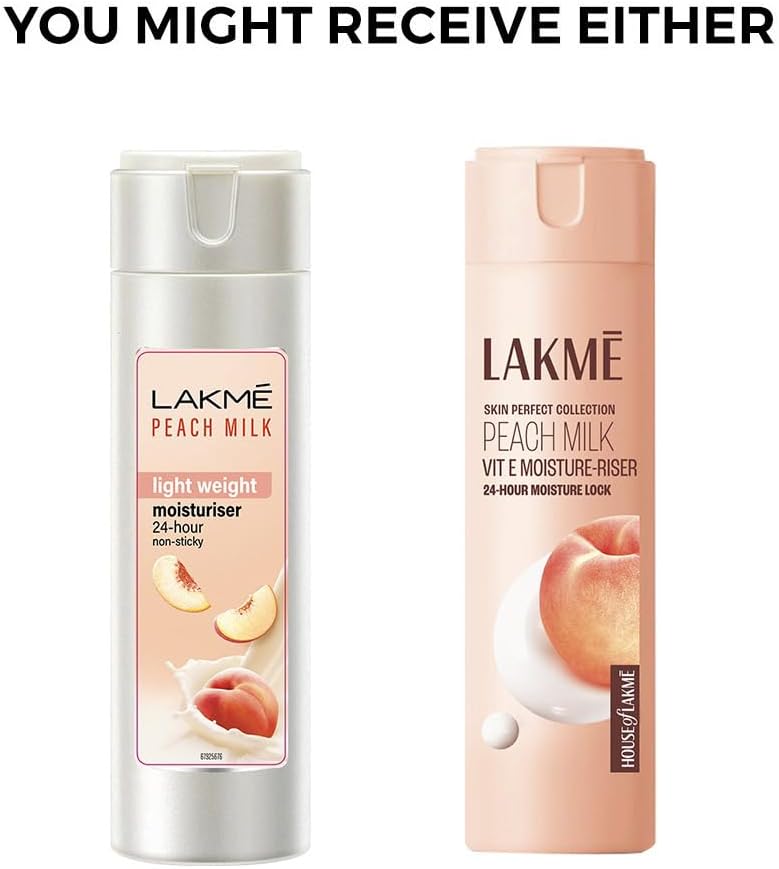 Is your skin loosing moisture as the day goes by ? Lakme brings to you a moisturizer which is a blend of wholesome peaches and milk|| which nourishes the skin deeply without making it appear oily. This light moisturizer with its soothing fragrance will make you fall in love with it instantly. This lotion easily absorbs into the skin to lock moisture for 12 hours to give you soft|| smooth and glowing skin. Choose the right Peach Milk Moisturizer: for light nourishment pick this classic lotion. For intense nourishment – try the Peach Milk Winter lotion. For nourishment with sun protection|| try the Peach Milk SPF lotion. For best results – use everyday for nourished skin that glows. About Lakme: Lakme is India’s No.1 Color Cosmetics brand offering a wide range of high-end|| world-class color cosmetic and skincare products. Lakme has a vast product range specially crafted by experts for the Indian skin. The brand has also been redefining fashion in India for over 15 years with Lakme Fashion Week|| India’s premier fashion event. Allergies: In the unlikely event of skin irritation|| stop using and consult a doctor immediately. Warning: Avoid contact with eyes. Wash your eyes thoroughly with clean water in case of contact. *OLD