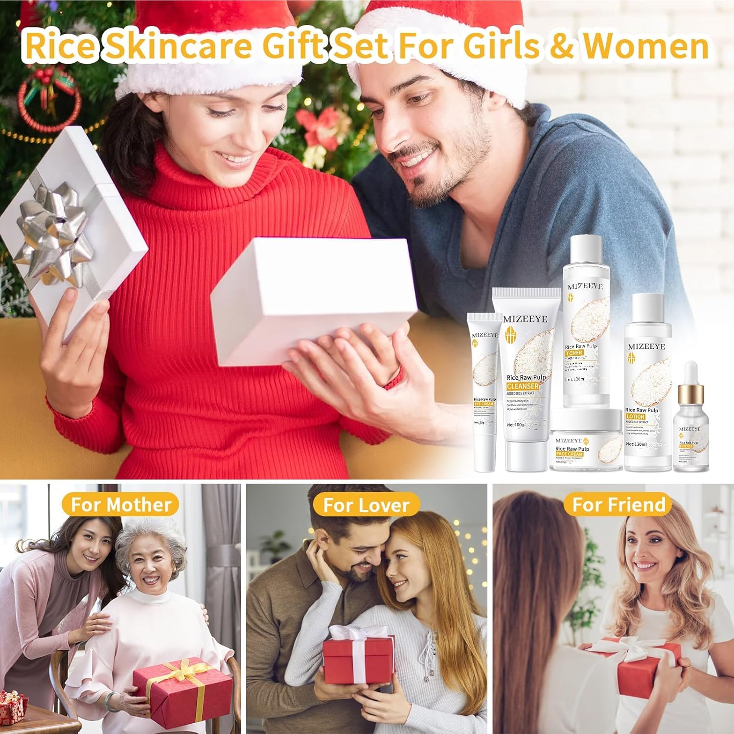 【Gift of Thoughtfulness】: Loving her can be more than just a bouquet of flowers, it can also be a thoughtful skincare set. The rice skincare set can meet her daily skincare needs and is suitable for all skin types. You can give it as a gift to the person you love