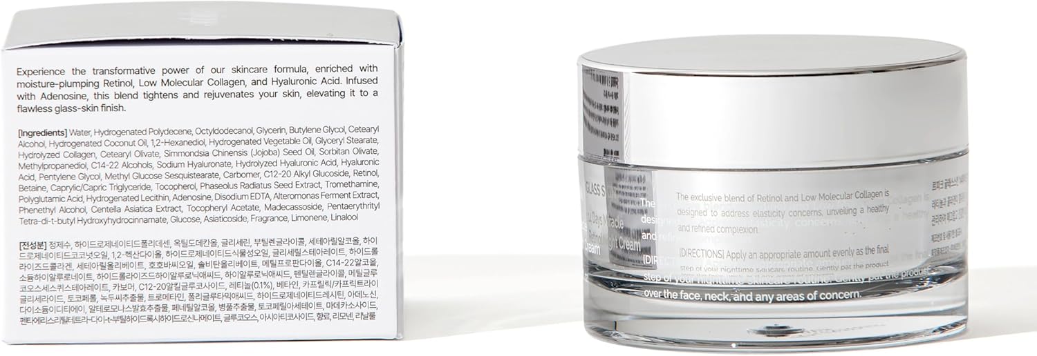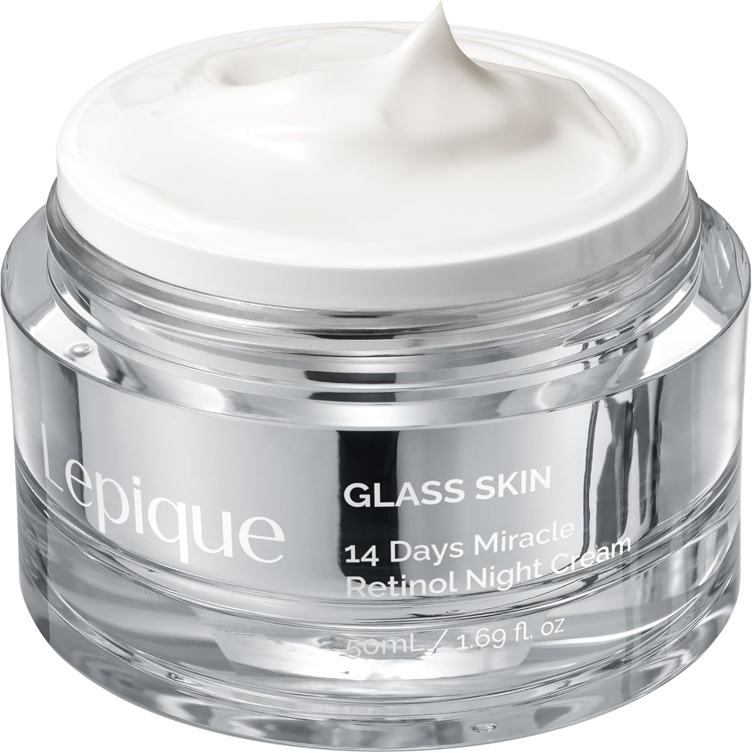Experience the transformative power of Lepique’s GLASS SKIN 14Days Miracle Retinol Night Cream. This innovative skincare formula is enriched with moisture-plumping Retinol, low-molecular collagen, and Hyaluronic Acid, designed to provide maximum performance on overnight skin hydration, regeneration, and firming. Infused with Adenosine, this potent blend tightens and rejuvenates your skin, elevating it to a flawless glass-skin finish. Wake up to a radiant, youthful complexion with this 50g (1.69 oz) jar of night cream. Indulge in the luxurious benefits of this formula and unveil a revitalized, glowing appearance. Suitable for all skin types, this night cream is a must-have addition to your skincare routine.