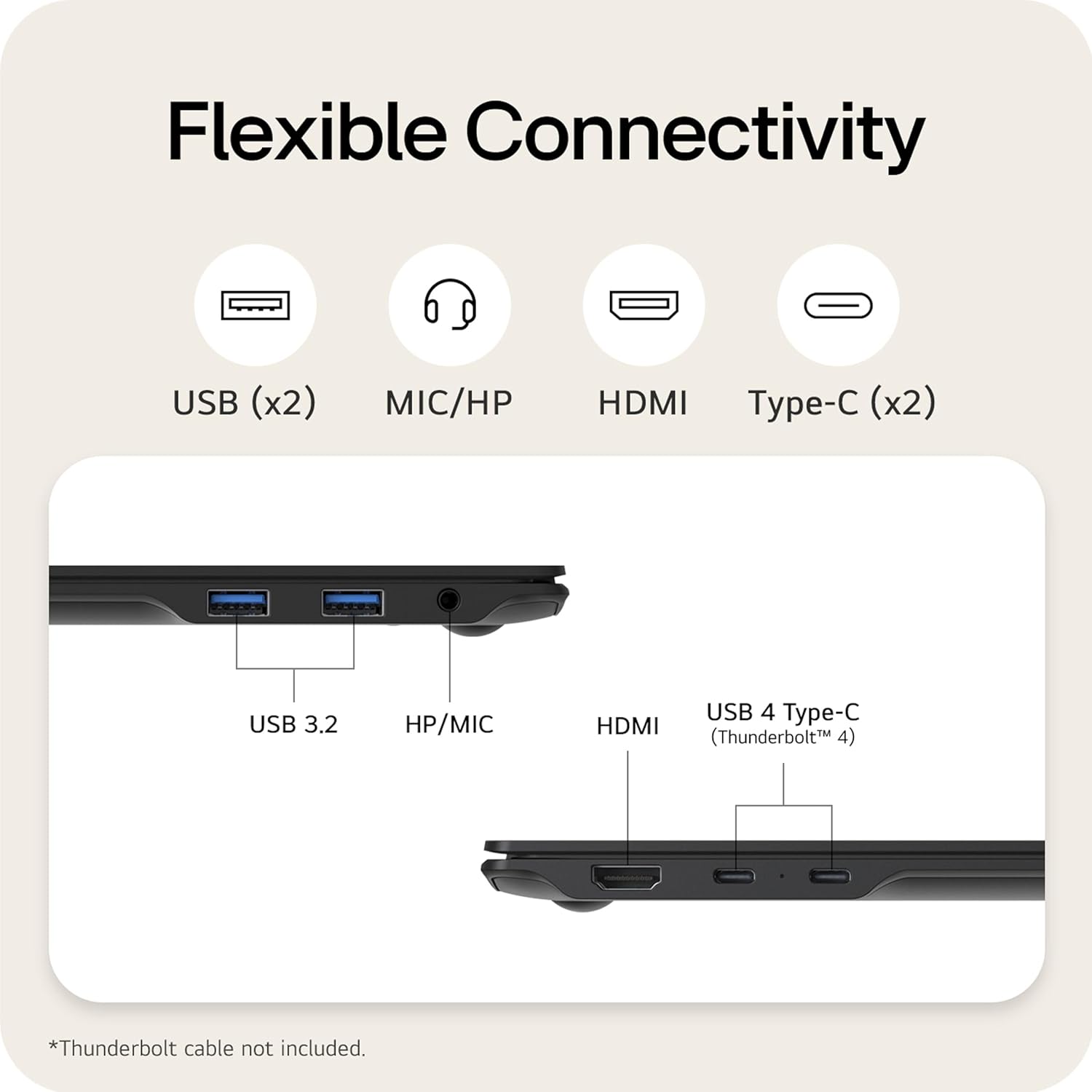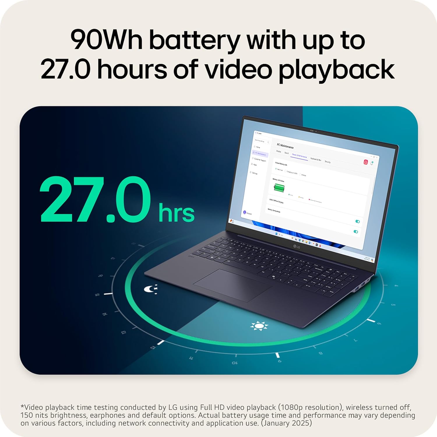 The Power to Stay Unplugged – Powered by a 90Wh high-capacity battery offering up to 27 hours of video playback time and equipped with our AI istant, gram analyzes user patterns to optimize battery efficiency. Boost your productivity and enjoy uninterrupted play.