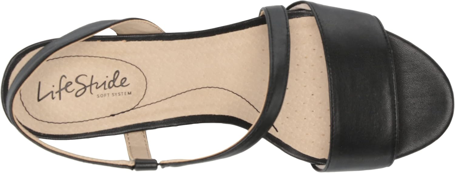 Adicione um toque elegante a qualquer visual nesta sandália plataforma fácil de usar com uma tira assimétrica. Cabedal de couro sintético, tecido ou lona com bico aberto, ajuste sem cadarço, detalhe de alça assimétrica e plataforma envolvida.