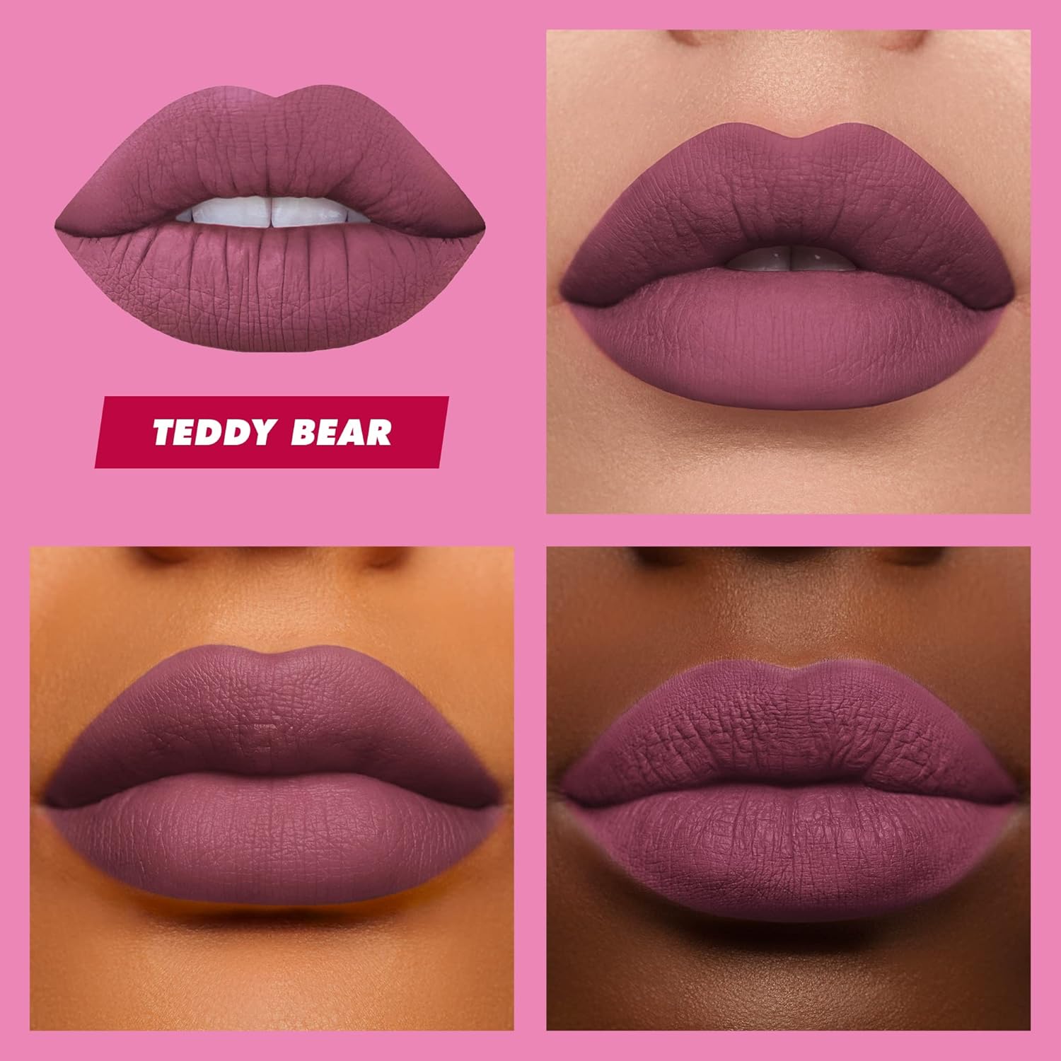 Long lasting matte liquid lipstick in a lilac brown hue.