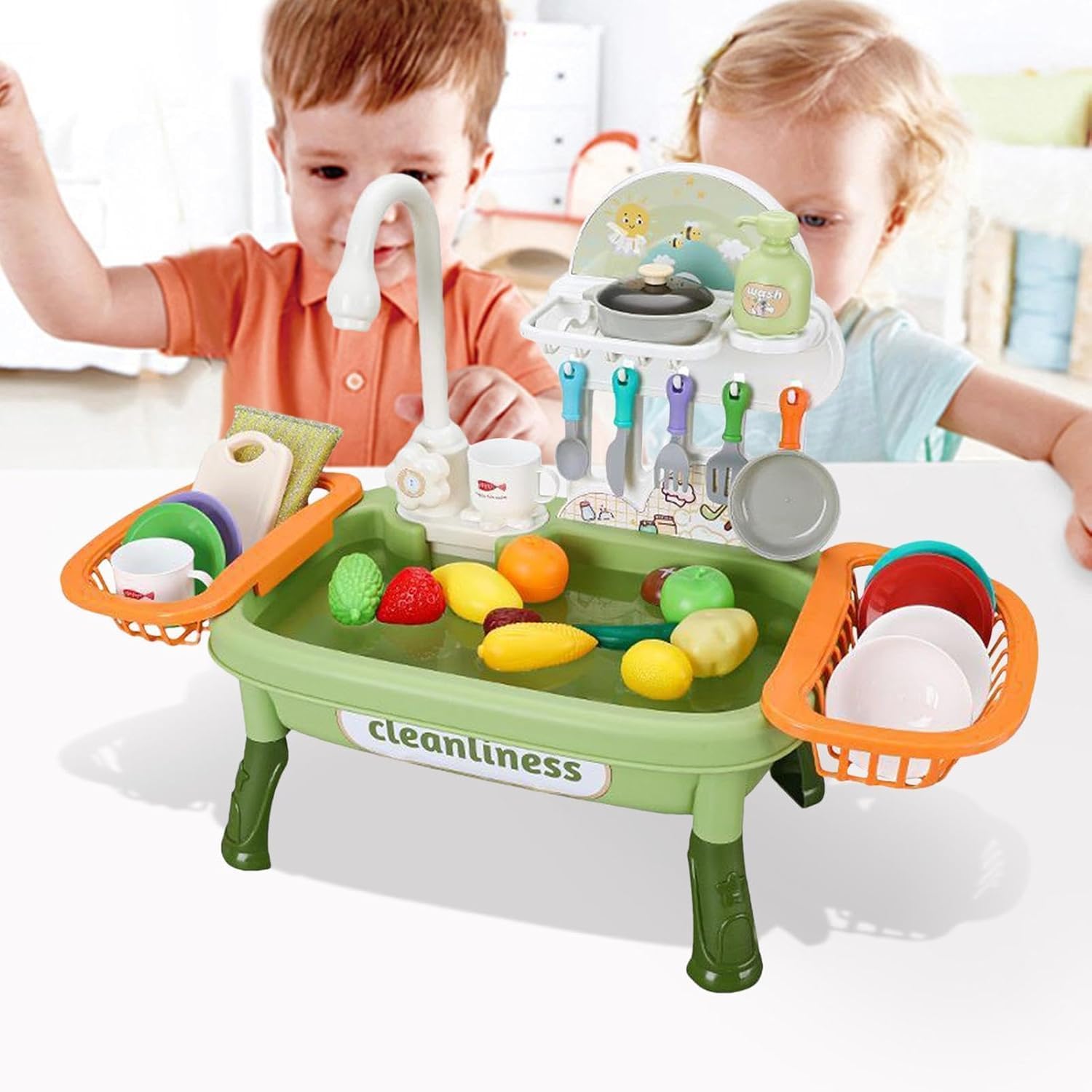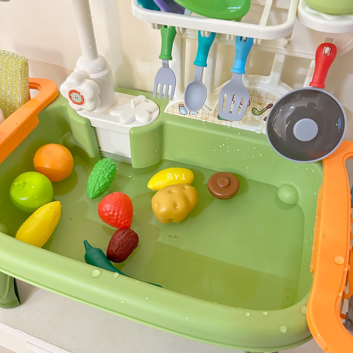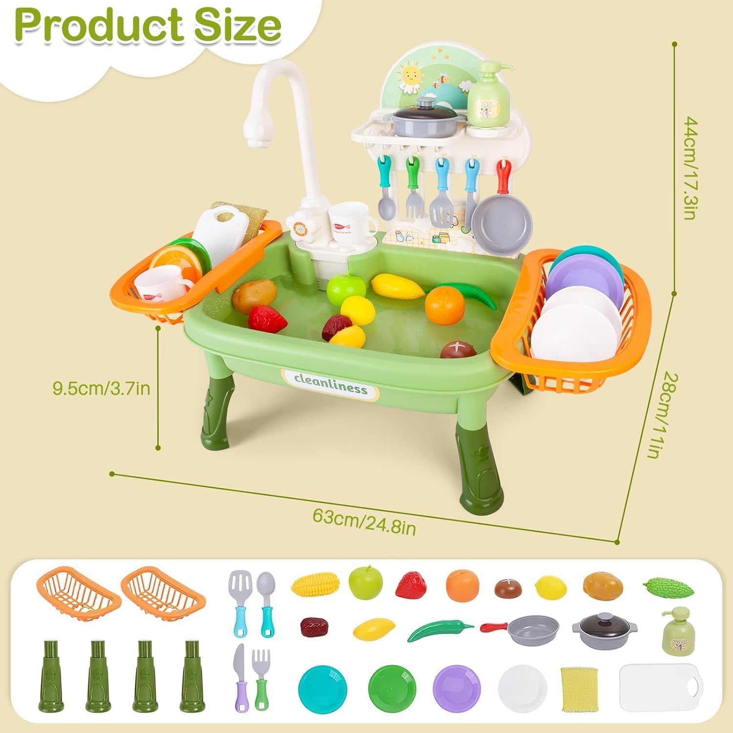 REALISTIC WATER FLOW DESIGN: Inspire your child’s creativity and role-play skills with our kitchen sink toy, including a moving faucet that circulates water realistically. Enhance their ability to mimic and understand real kitchen activities, making learning fun and exciting.