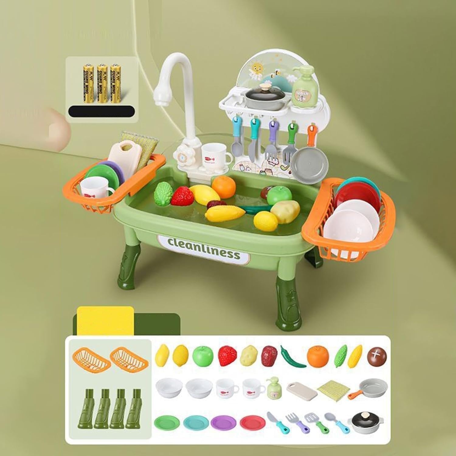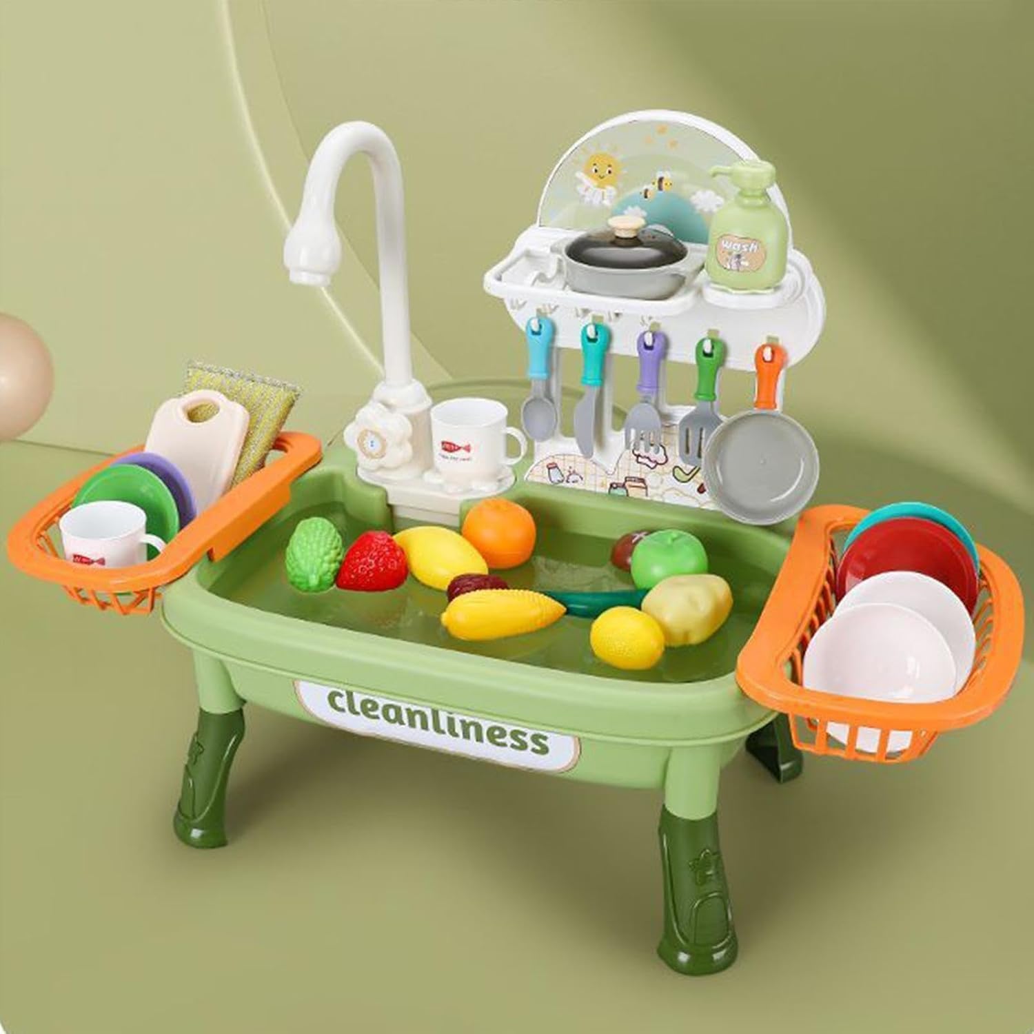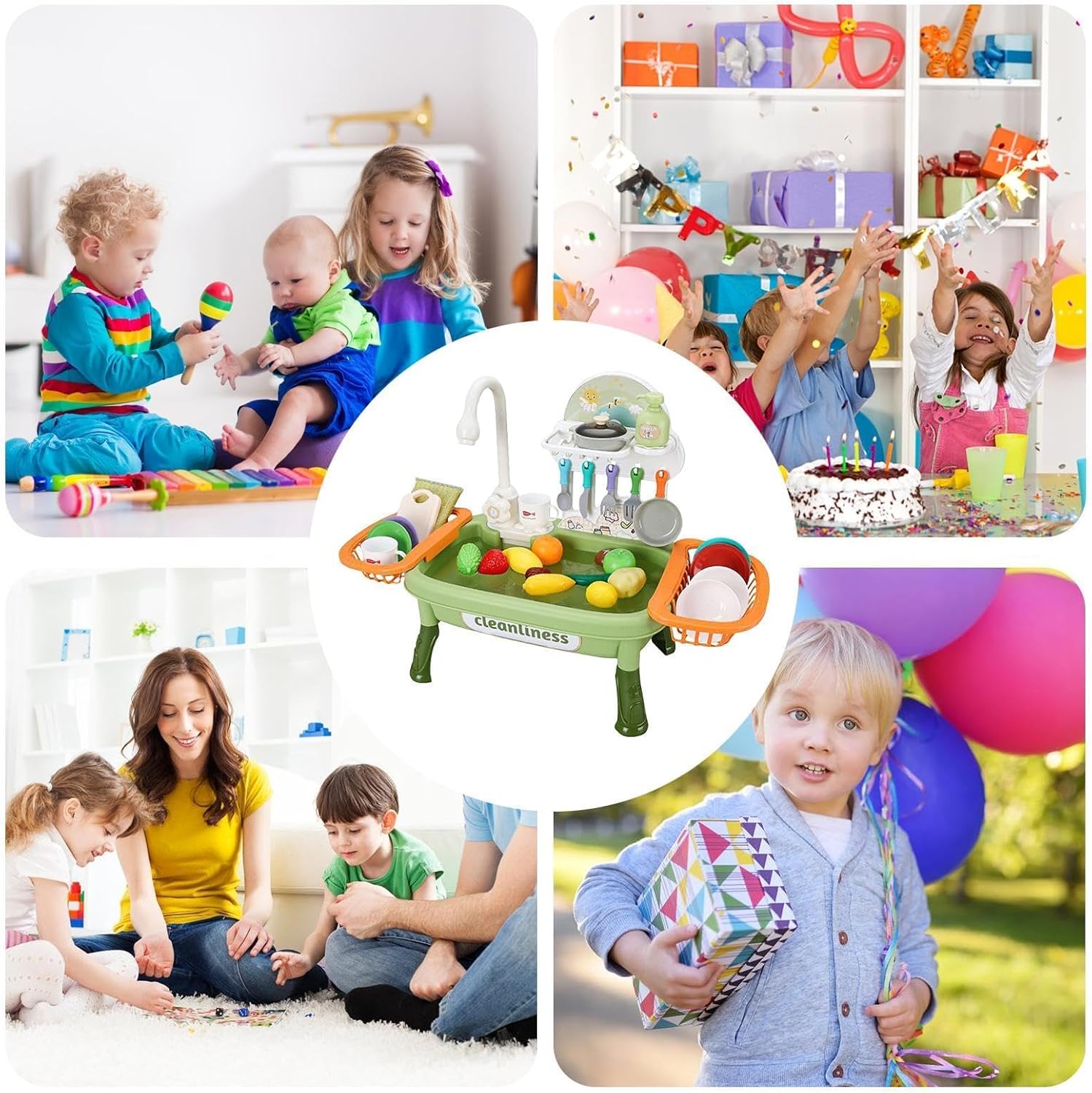 REALISTIC WATER FLOW DESIGN: Inspire your child’s creativity and role-play skills with our kitchen sink toy, including a moving faucet that circulates water realistically. Enhance their ability to mimic and understand real kitchen activities, making learning fun and exciting.