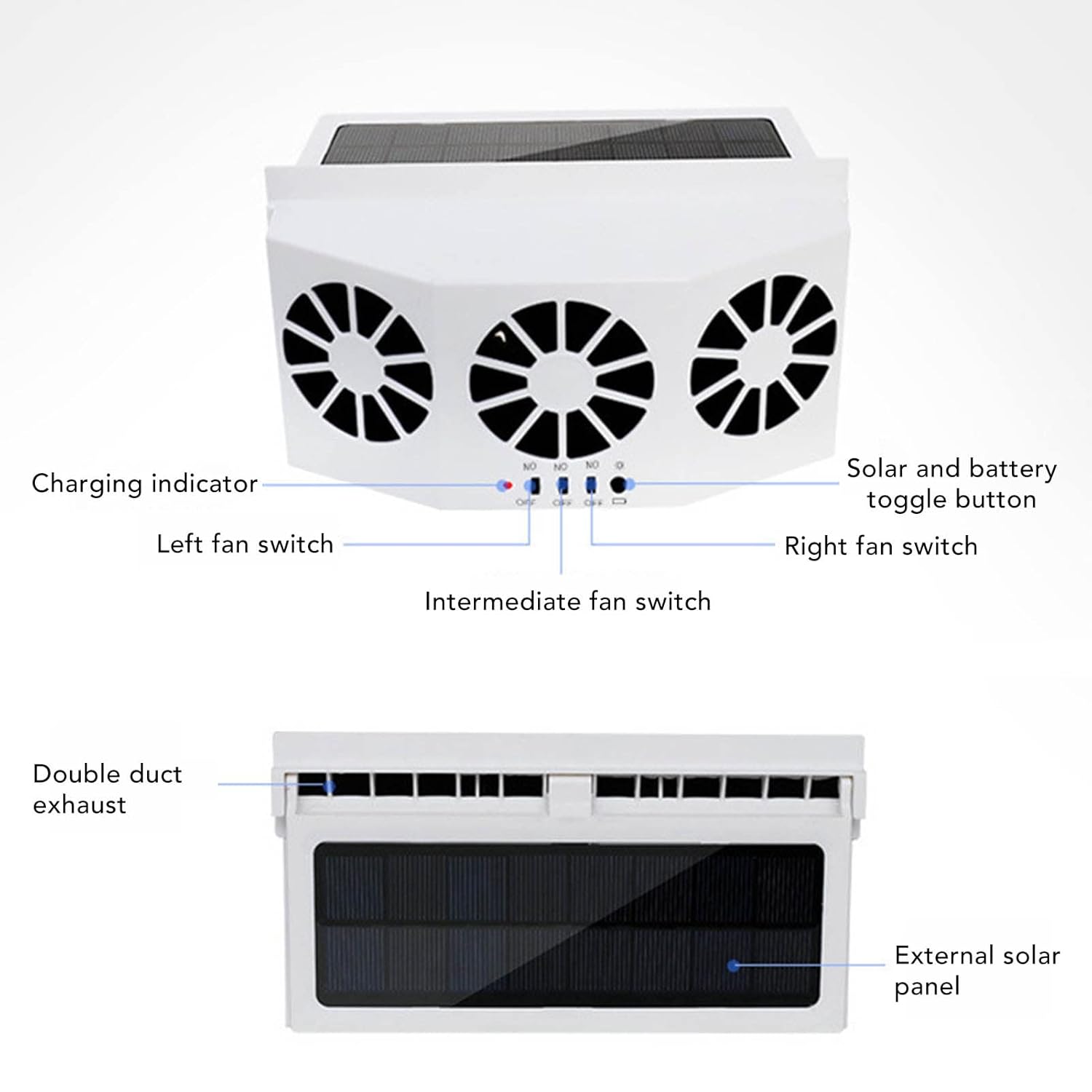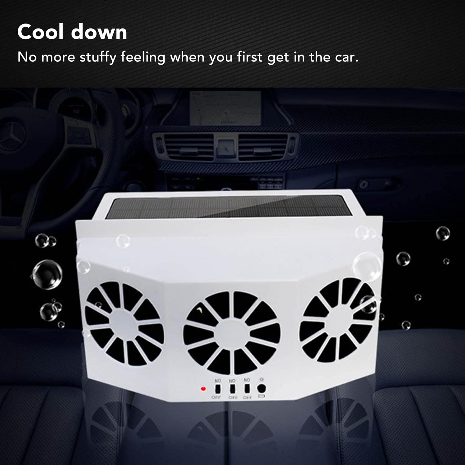 3 Fans Solar Powered Car Cooler, Large Wide Angle, Portable Car Exhaust Ventilation Fan, Deodorant and Energy Saving, with Solar Location Outside The Window, White