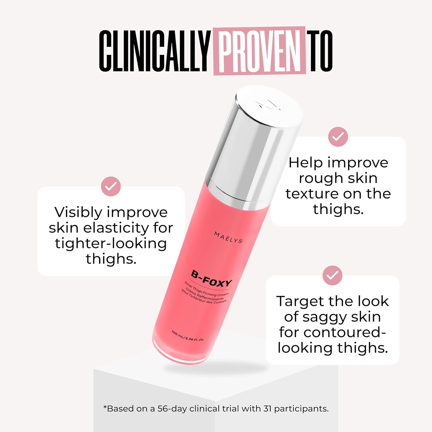 Get Tighter-Looking Thighs – Show off an all-around smoother-looking silhouette with B-Foxy! Our clinically proven reshaping cream helps to firm the appearance of thighs and contour the look of saggy skin.