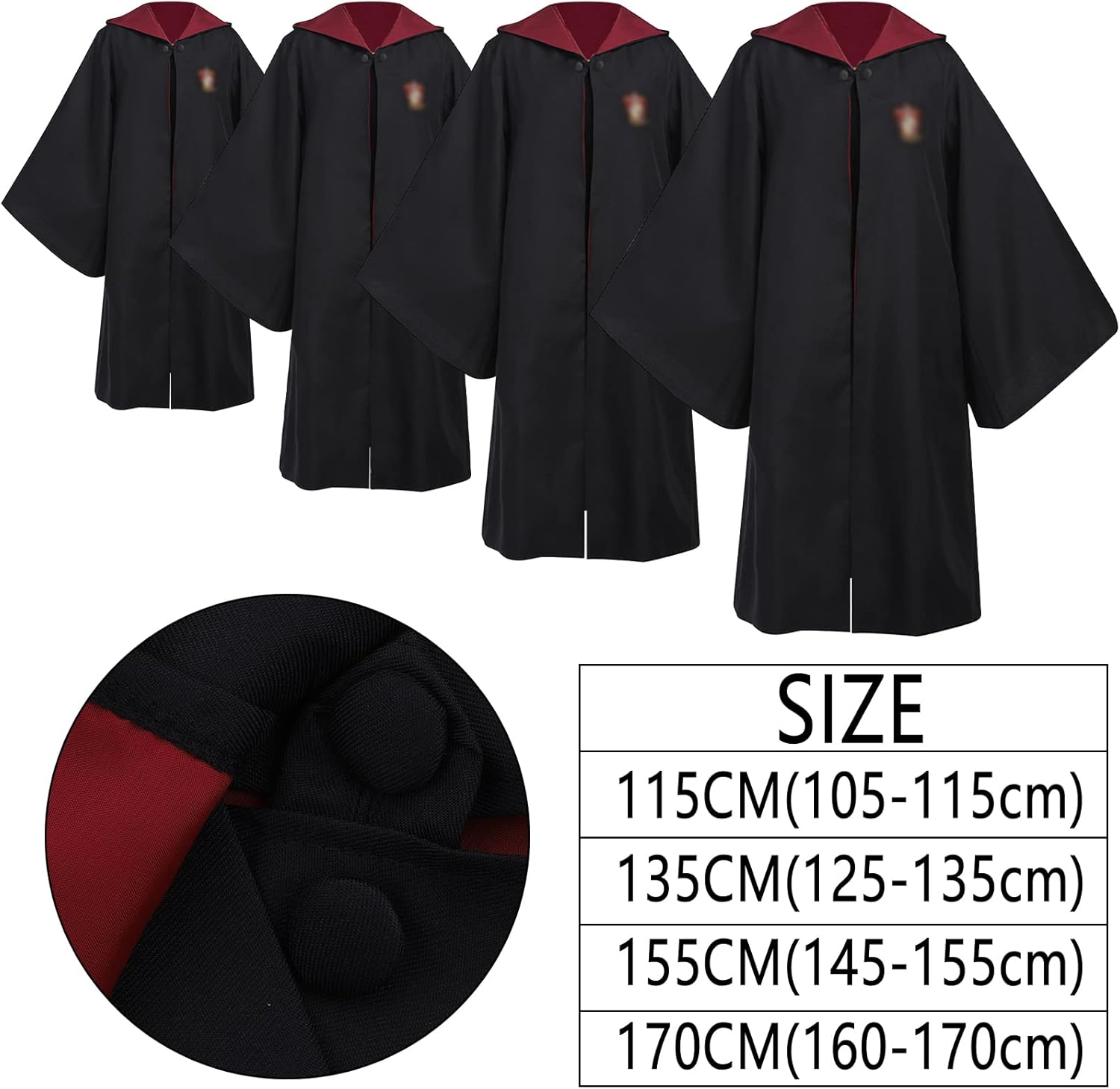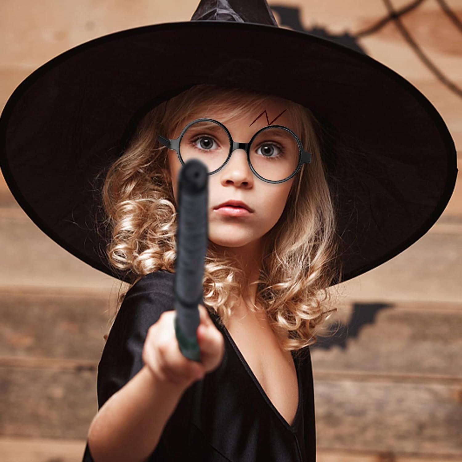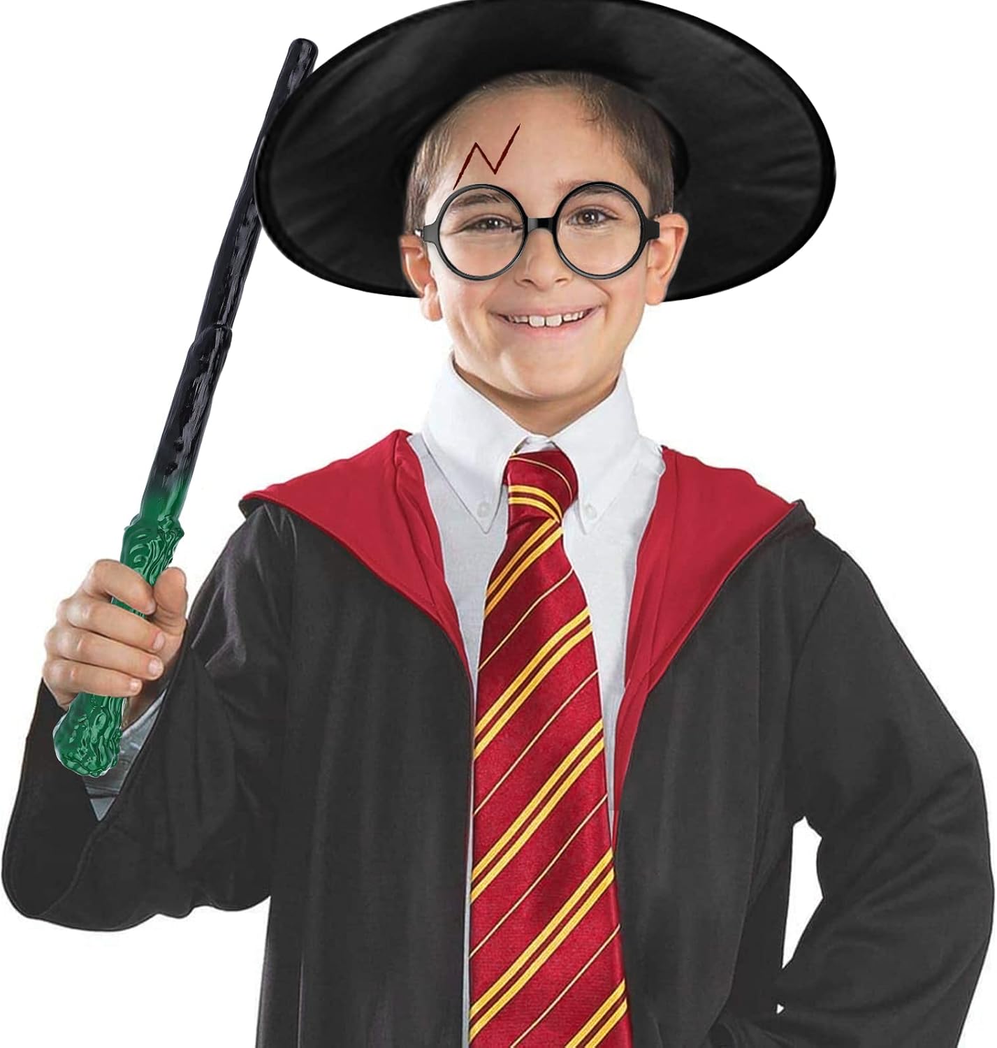 Magic Wizard Unisex Costume Robe Cape with Magic Wand Tie Magic Hat Glasses Frame Tattoo for Adults Kids Cosplay Dress Up Costume Accessories