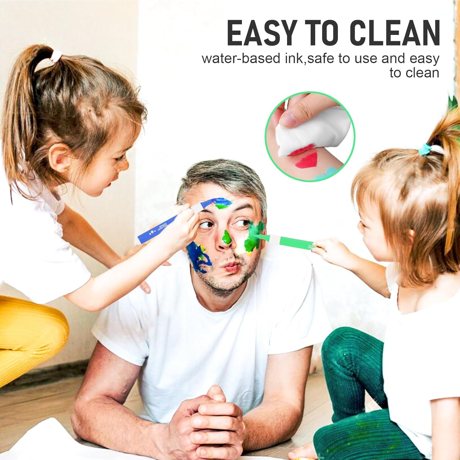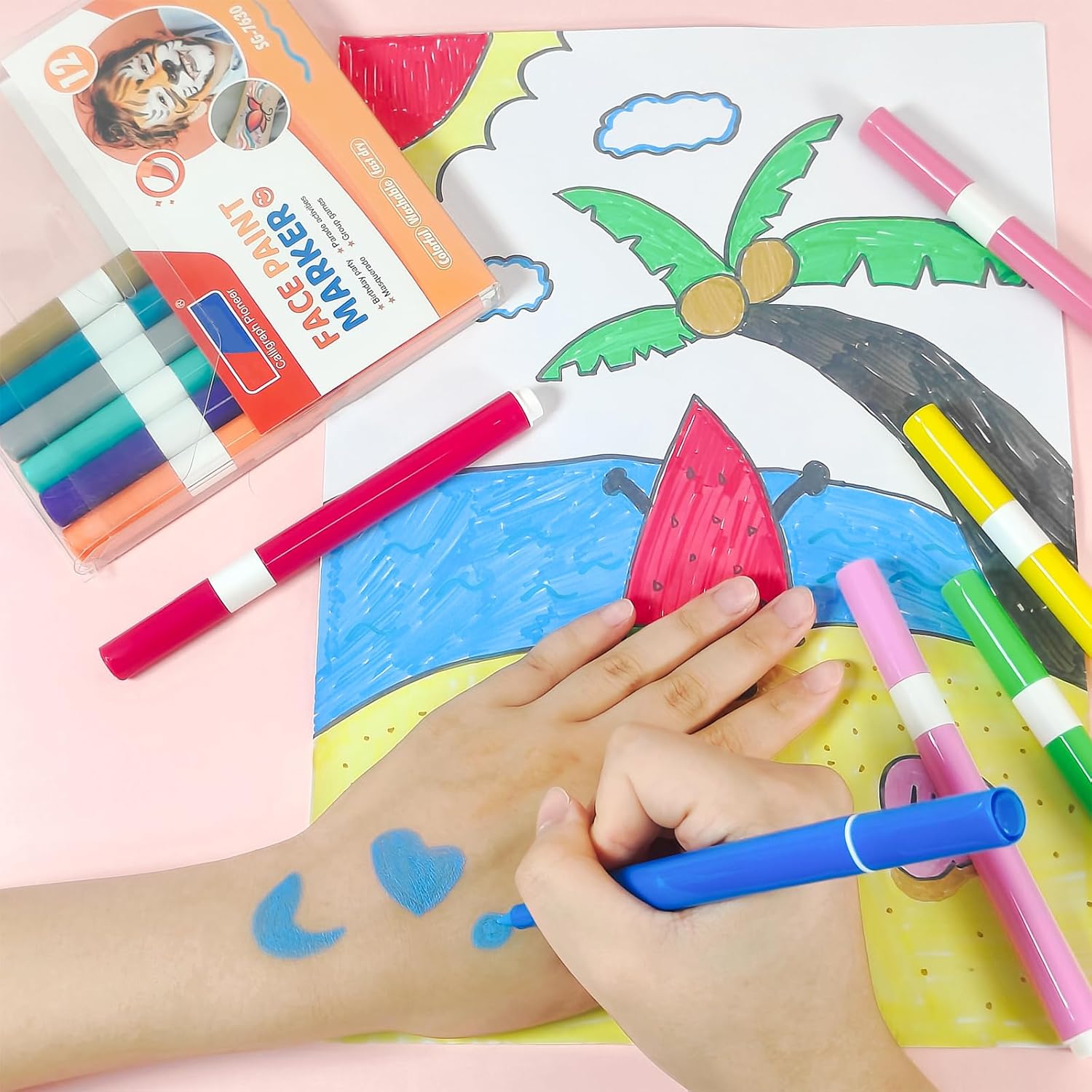 SAFE&EASY TO WASH: This washable drawing marker use water based ink, safe, acid-free, skin-friendly. And it is a breeze to clean with wet wipes or wash with soap and water without leaving any residue.(Note: please do an allergy test on your hands before use)