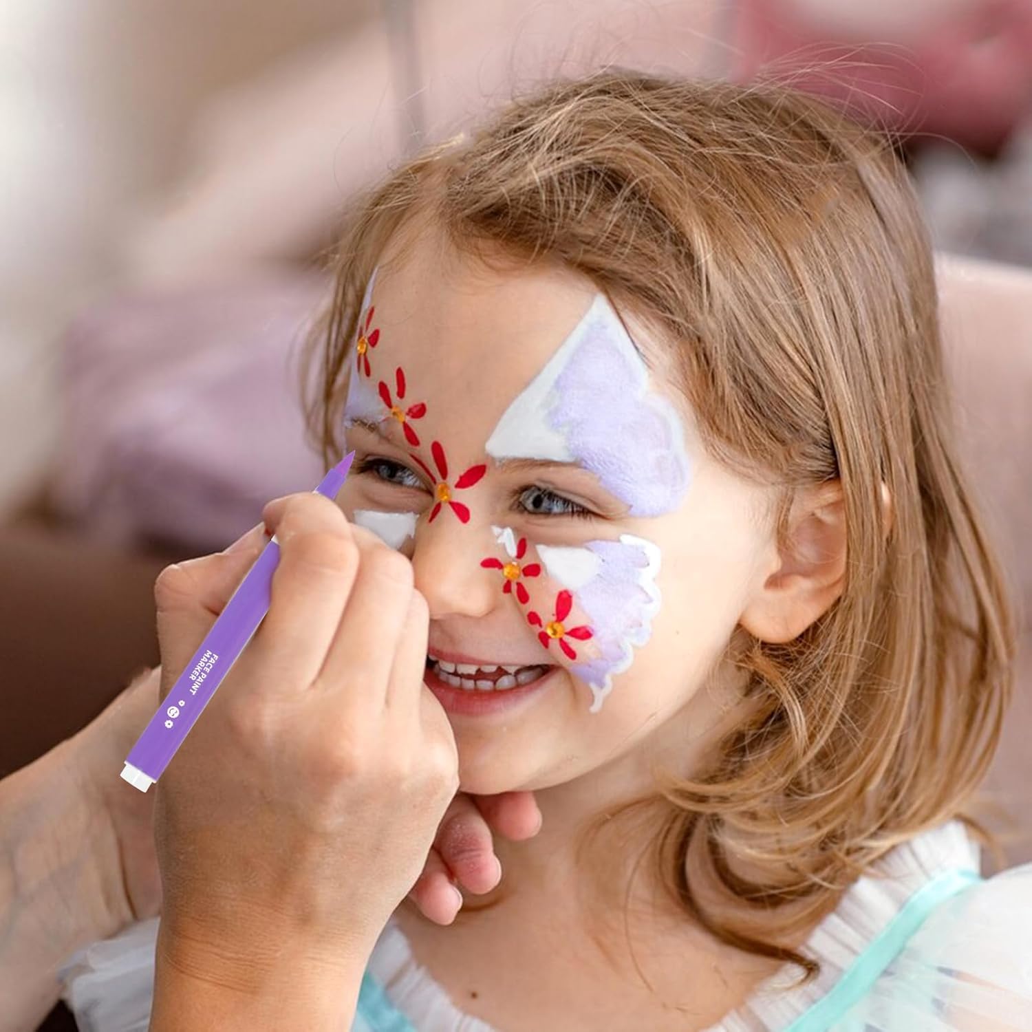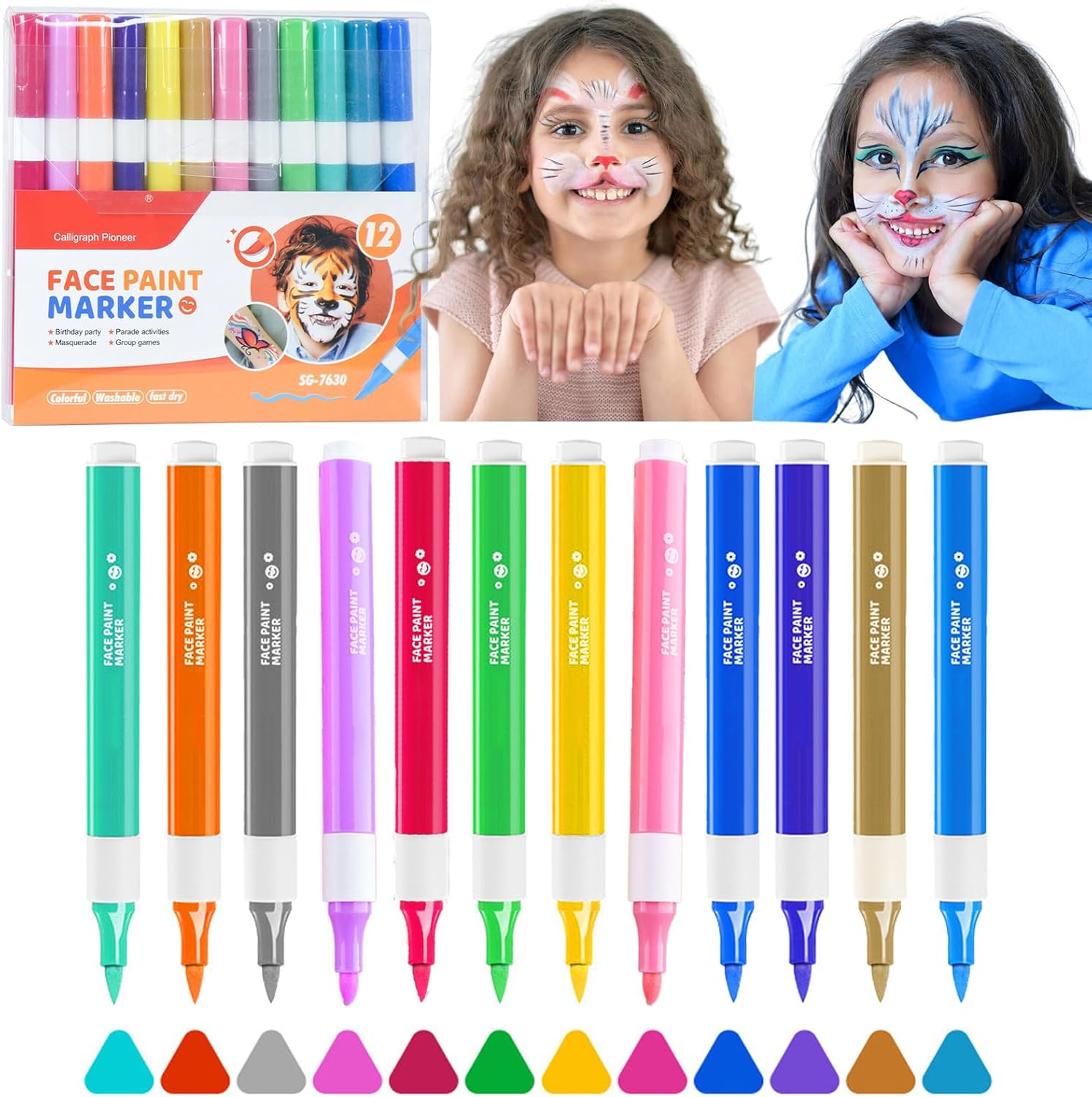 FLEXIBLE AND EASY TO USE: This felt tip face painting marker has a flexible brush tip that is wear-resistant, non-bleeding through, glides on evenly and smoothly, providing better control of line widths, perfect for detailed designs and large area painting.