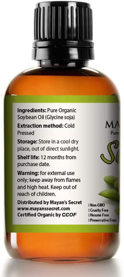 HIGH QUALITY, USDA CERTIFIED ORGANIC SOYBEAN OIL -What sets our Essential Oils apart is our unparalleled purity and concentration. One ingredient only -Pure Organic Soybean oil, Natural, Refined, Cold Pressed with no adulterants or dilution, Mayan’s Secret oils provide the maximum benefit possible and are uncompromising.