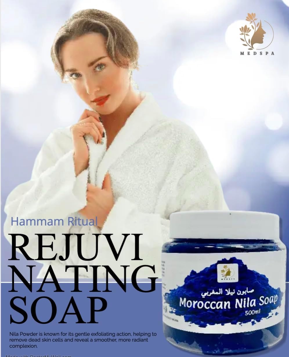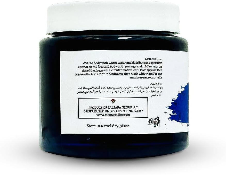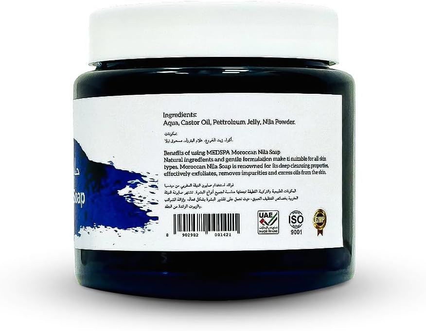 Nila Moroccan soap is a luxurious and unique skincare product that combines the traditional Moroccan beauty ingredient, Nila Powder, with the nourishing properties of soap. This special soap is crafted using traditional methods that involve blending Nila Powder, which is derived from the leaves of the indigo plant, with other natural ingredients to create a cleansing and rejuvenating experience for the skin. The soap is enriched with the purifying and soothing properties of Nila Powder, which is known to help detoxify the skin, unclog pores, and soothe inflammation. It is believed to have antioxidant properties that help fight free radicals and protect the skin from environmental damage. Additionally, Nila Powder is known for its gentle exfoliating action, helping to remove dead skin cells and reveal a smoother, more radiant complexion. Moroccan soap with Nila Powder also incorporates the nourishing properties of soap, which helps to cleanse the skin and maintain its natural moisture balance. The soap is often formulated with high-quality natural oils, which provide hydration and nourishment to the skin, leaving it feeling soft, supple, and refreshed. Using Nila Powder Moroccan soap is a unique and rejuvenating experience for the skin. When used in the shower or during a bath, the soap creates a rich lather that cleanses the skin, while the Nila Powder works to purify and revitalize the complexion. The soap can be used on the face and body, and is suitable for all skin types. The rich blue color of Nila Powder Moroccan soap adds an exotic and luxurious touch to your skincare routine. It has a natural, earthy scent that is reminiscent of the Moroccan landscape, providing a sensory experience that transports you to the traditional beauty rituals of Morocco.