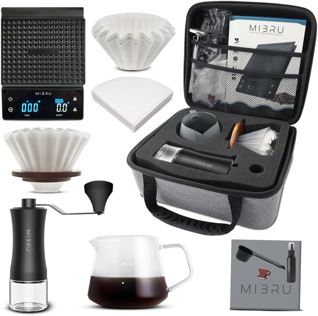 MIBRU V60 Coffee Maker Set 11 PCS Pour Over Coffee Maker Set Drip Coffee Maker Kit with Portable Handbag حقيبة ادوات القهوه المختصه طقم (Handbag Style)